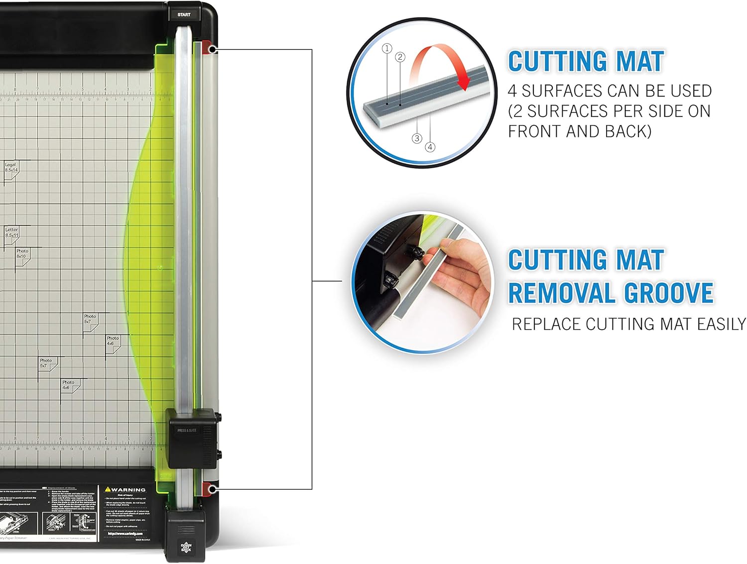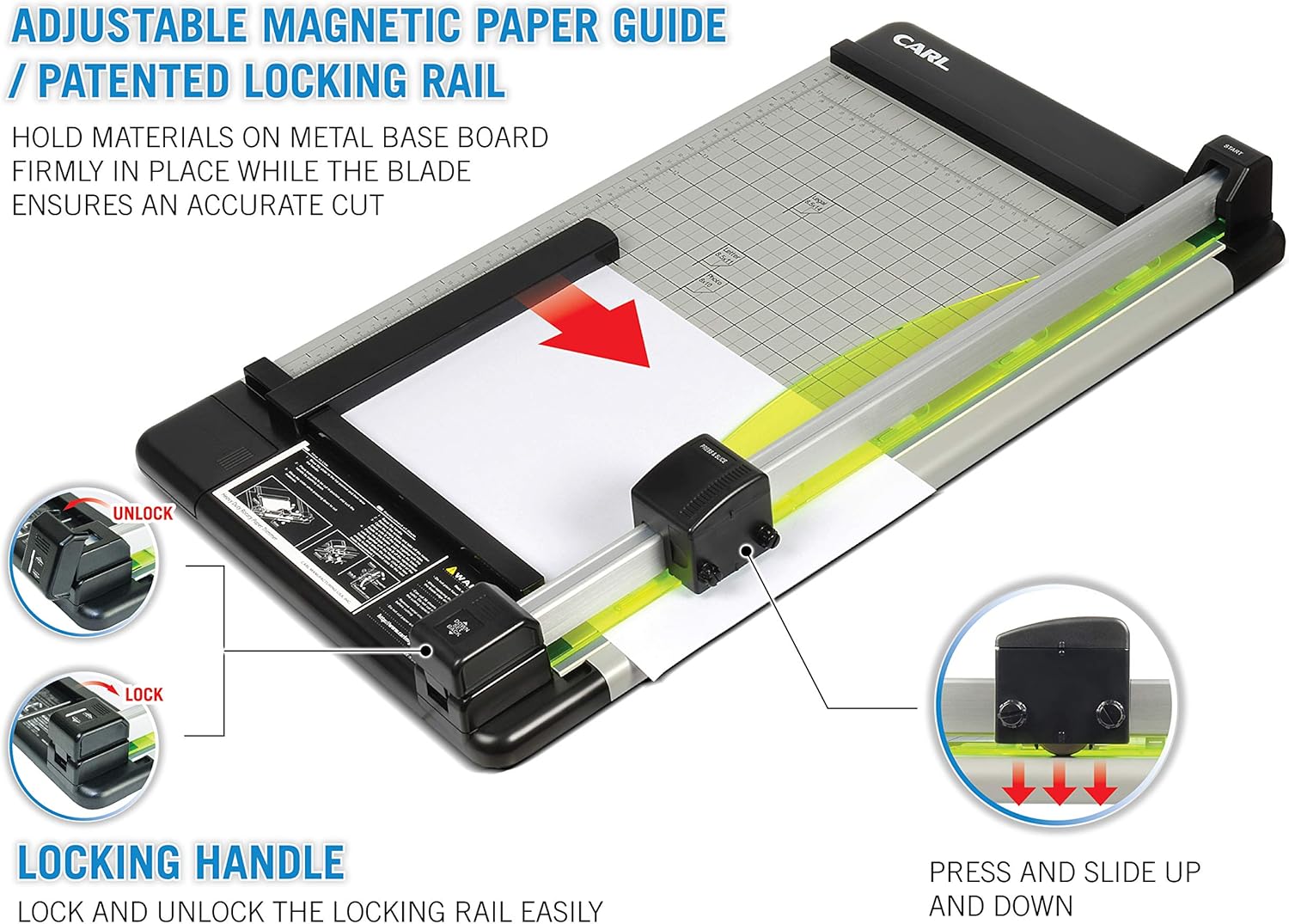 • The patented locking rail mechanism hold paper firmly in place while the Premium carbide blade ensures an accurate cut.