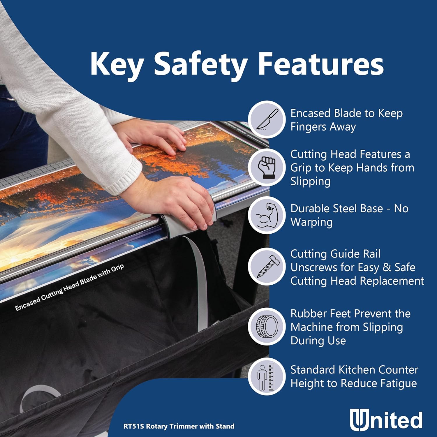 United Office Products RT51S Commercial Rotary Paper Trimmer with Stand and Fabric Catch Tray, Sturdy Metal Base, 51" Cut Length, 10 Sheet Capacity, Paper Cutter for Offices, Schools and Crafts