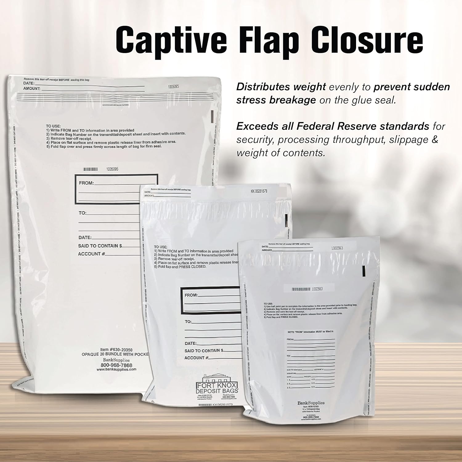 - EASY TO USE: The white bank bag features a 5-inch exterior pocket that is perfect for additional checks and non-cash items to be processed separately and supports easy automation.