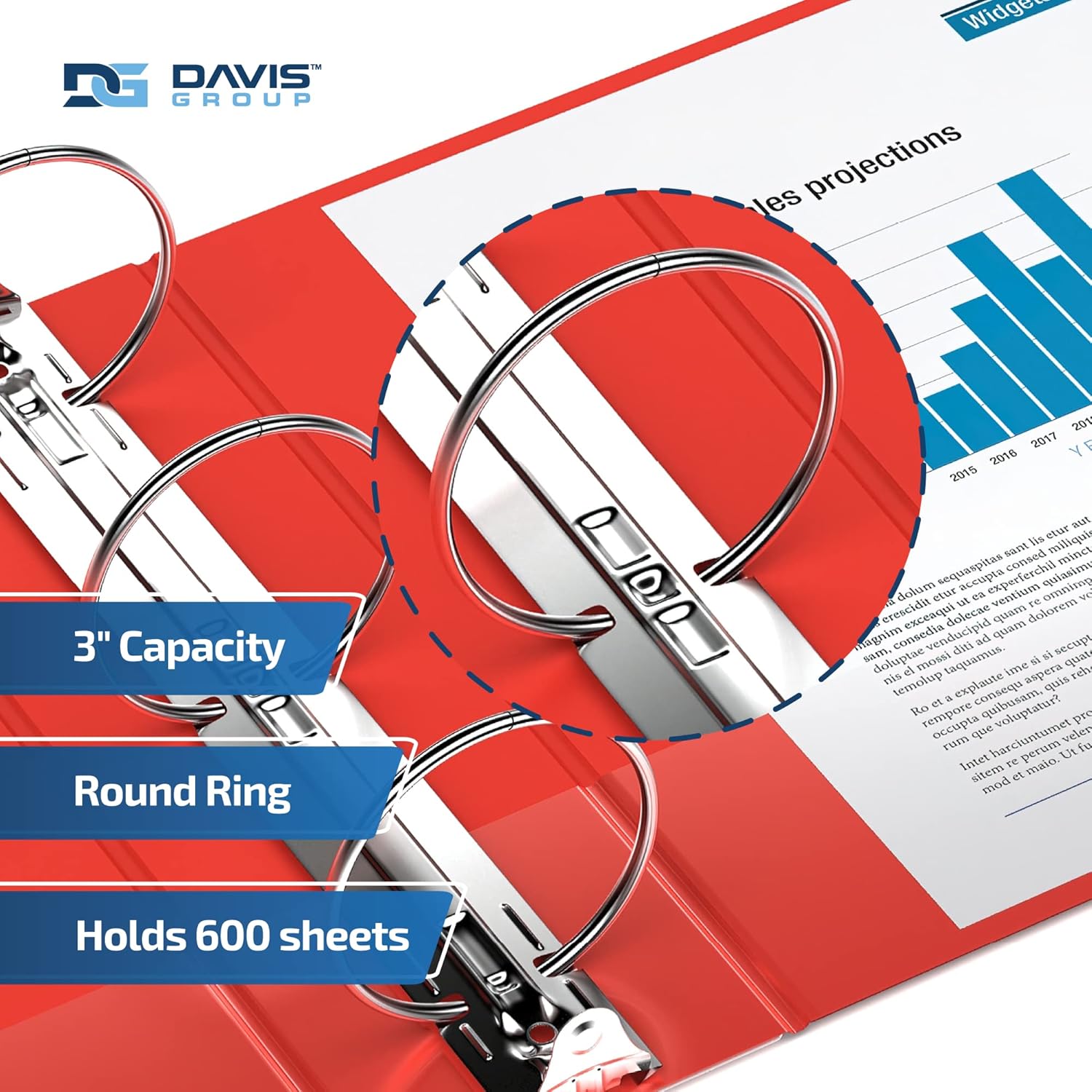 - ROUND-RING BINDERS: These big binders feature round rings and come in 1-inch, 1.5-inch, 2-inch, and 3-inch sizes. The 1-inch binder holds 200 sheets of paper, the 1.5-inch binder holds 275 sheets of paper, the 2-inch binder holds 400 sheets of paper, and the 3-inch binder holds 600 sheets of paper.