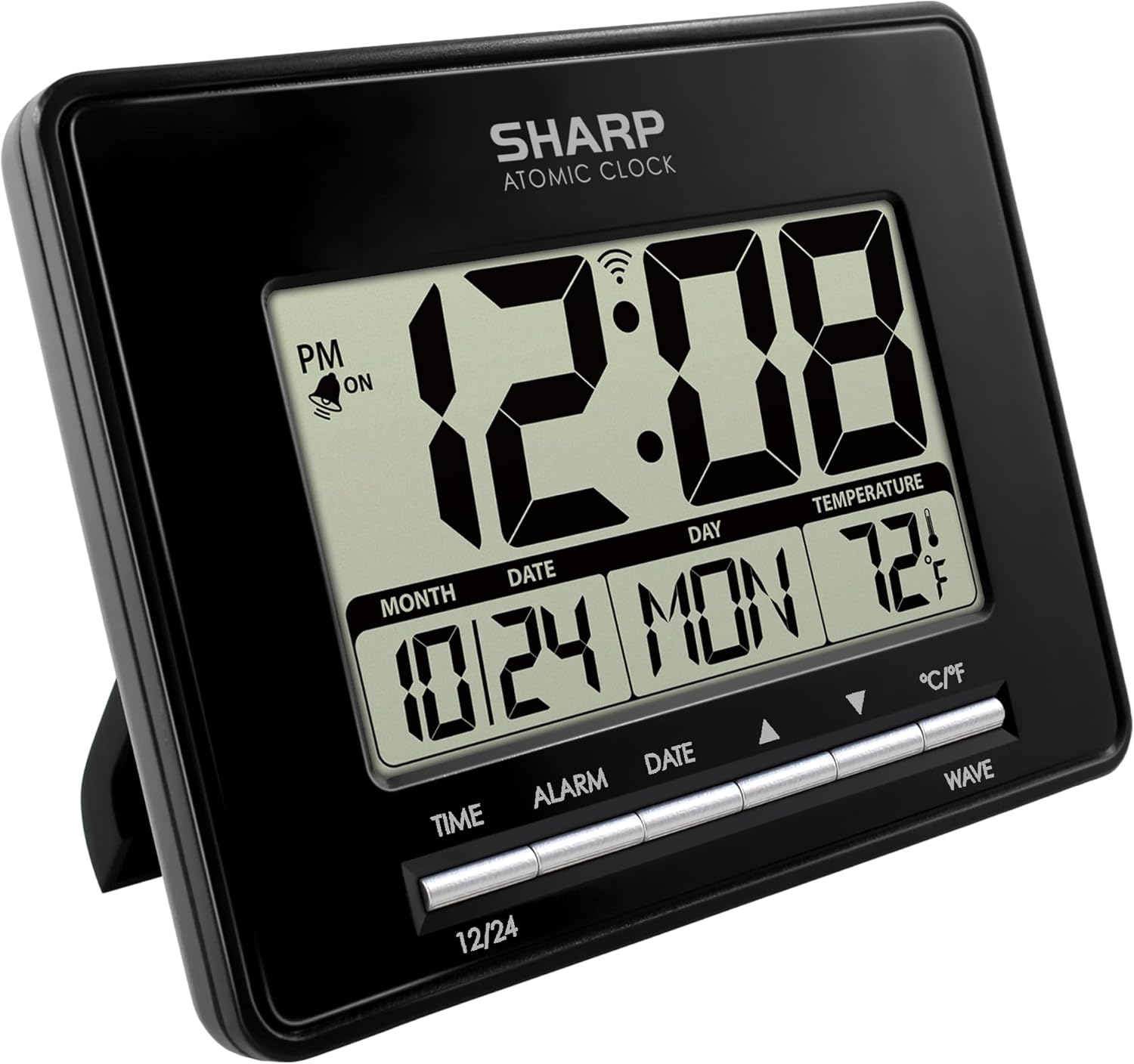 Sharp Atomic Desktop Clock – Auto Set Digital Alarm Clock - Atomic Accuracy - Easy to Read Screen with Time/Date/Temperature Display- Perfect for Nightstand or Desk