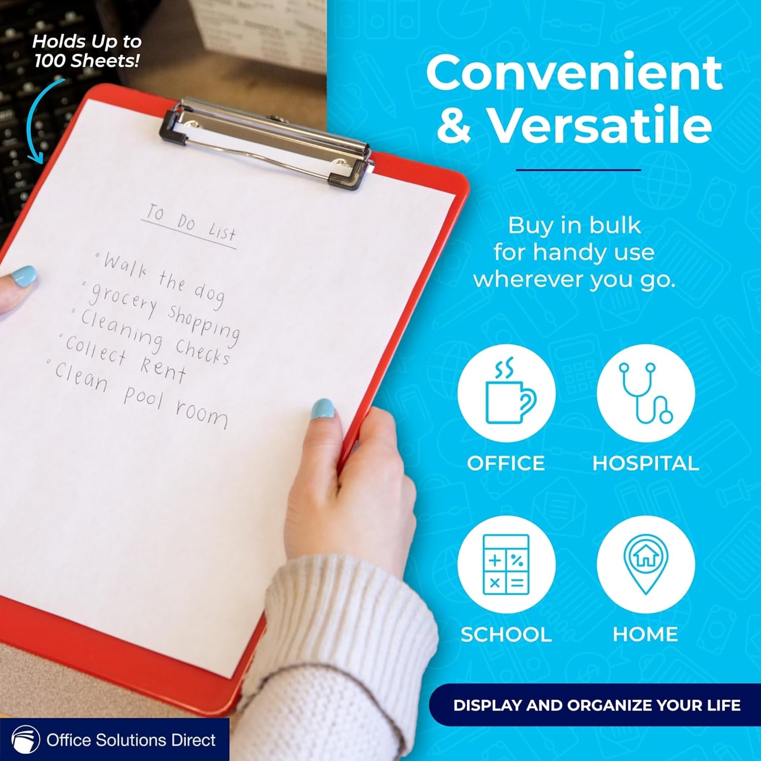 - ✅CLIP IT IN COLOR: Sure, you could have a boring office clipboard, but why? With these colored clipboards from Office Solutions Direct, papers are far more fun to read! Not to mention the functionality of color coding your life! We have 5 different sets to choose from (assorted, or red, black, blue and clear) so go, choose your favorite clip board color and clip your world in vibrant fun!