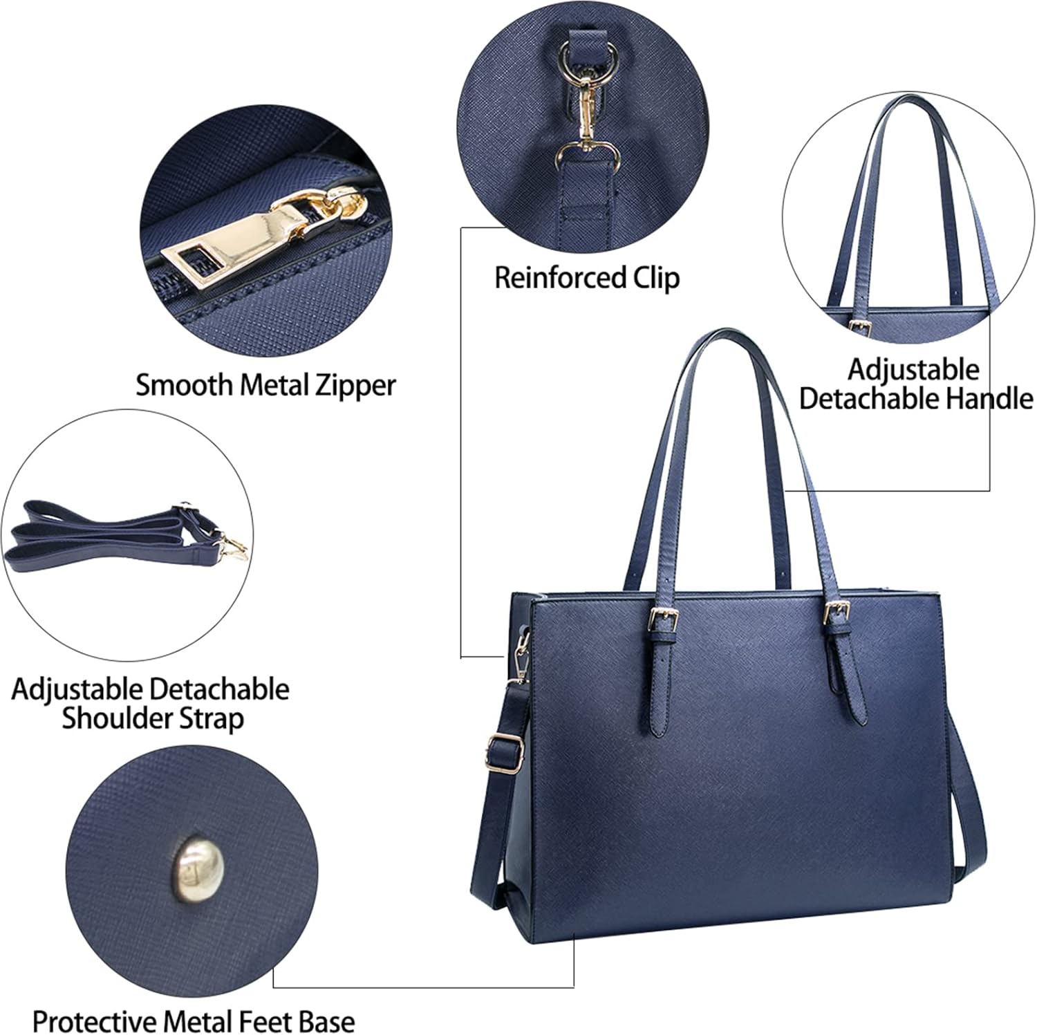 - Classy & Professional Laptop Women Bag: Made of durable and premium water-repellent scratch-resistant soft PU leather and polyester lining. Metal feet base protects your bag from damage. NUBILY laptop bag is perfectly poised and beautiful style anywhere you go, the simple lines and solid colors make this large business tote bag is a classical piece.