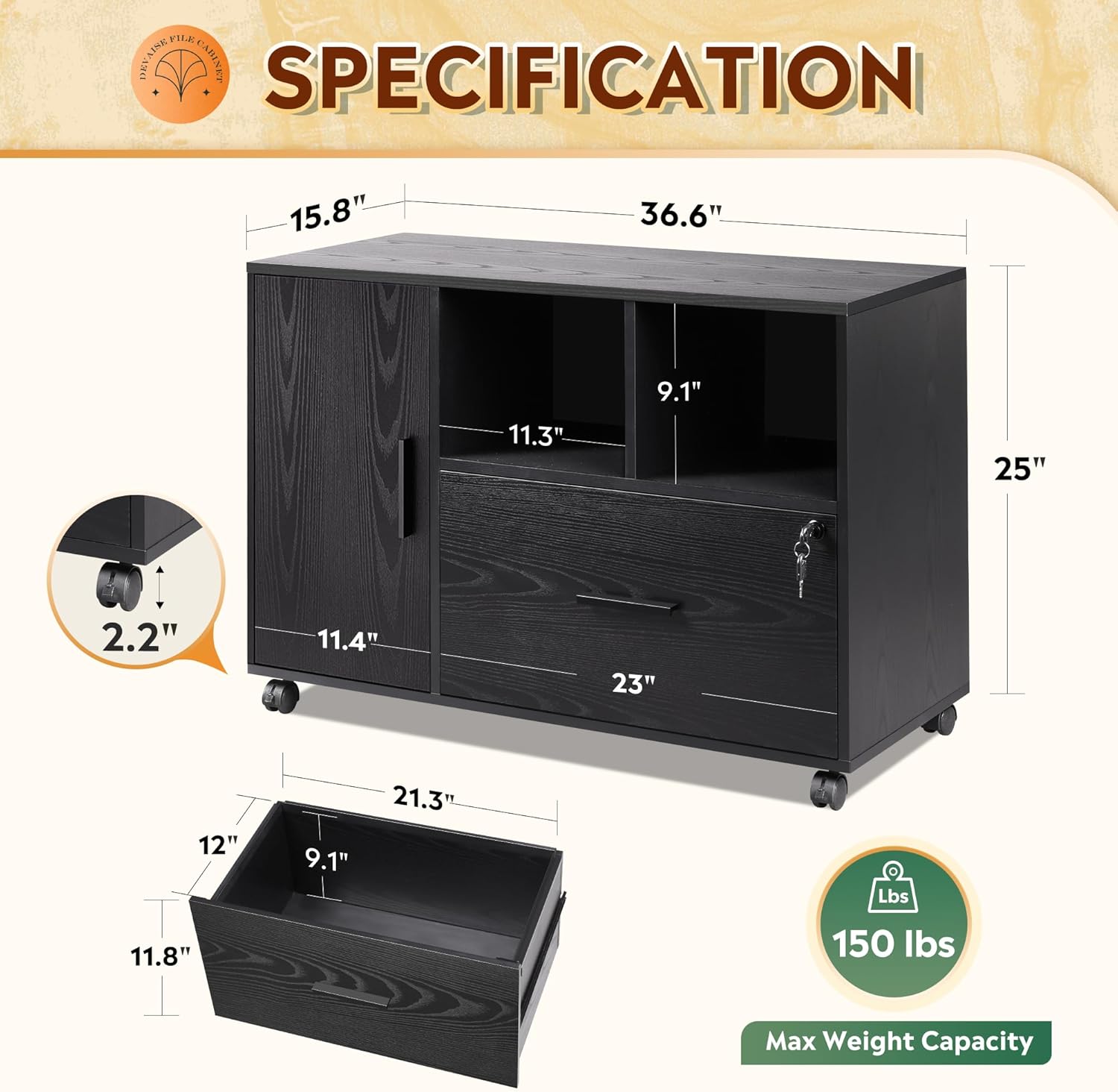 - WIDE USAGE DESIGN: Featuring 1 side cabinet, 1 large drawer with lock and open space for storage, this wood file cabinet for home office is designed to organize your room and office. It also can be used as a large printer stand with storage.