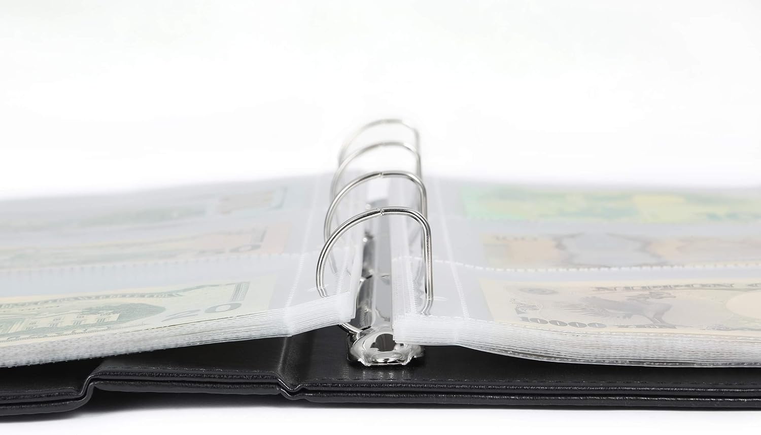 - Large Capacity: 30 Sheets,3 pocket Currency storage page,Holds 90 Banknotes. you can add more sheets to hold more banknote! Item # B097468RSV for extra sheets.