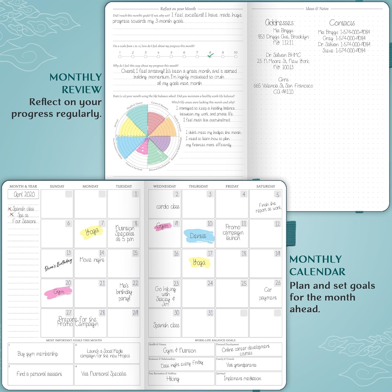 • IMPROVE WORK-LIFE BALANCE & REFLECT REGULARLY – This life planner prompts you to plan monthly activities in 6 life areas and reflect on your progress regularly to see where your life might be lacking.