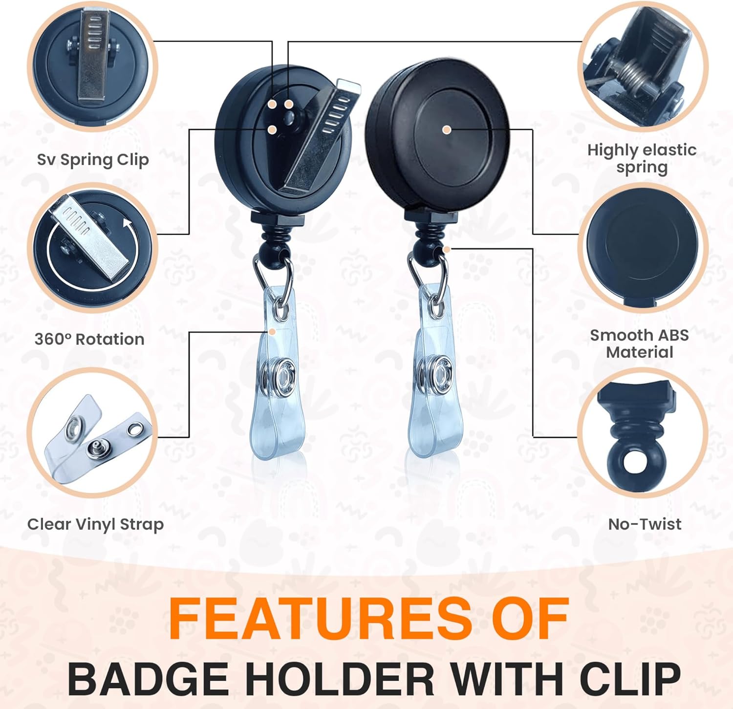 • 【MULTI DIRECTION ROTATION OF RETRACTABLE CLIP】: Id badge retractable clip’s alligator clip reel-360 ° Swivel clip makes key card holder retractable to extend smoothly no matter up, down, left or right. Name badge clips retractable are suitable for hospitals, schools, offices, factories, seminars, company activities, safety maintenance. Great for nurses, maintenance, medical and office staff, security staff, teachers, students, custodians, factory workers and employees etc
