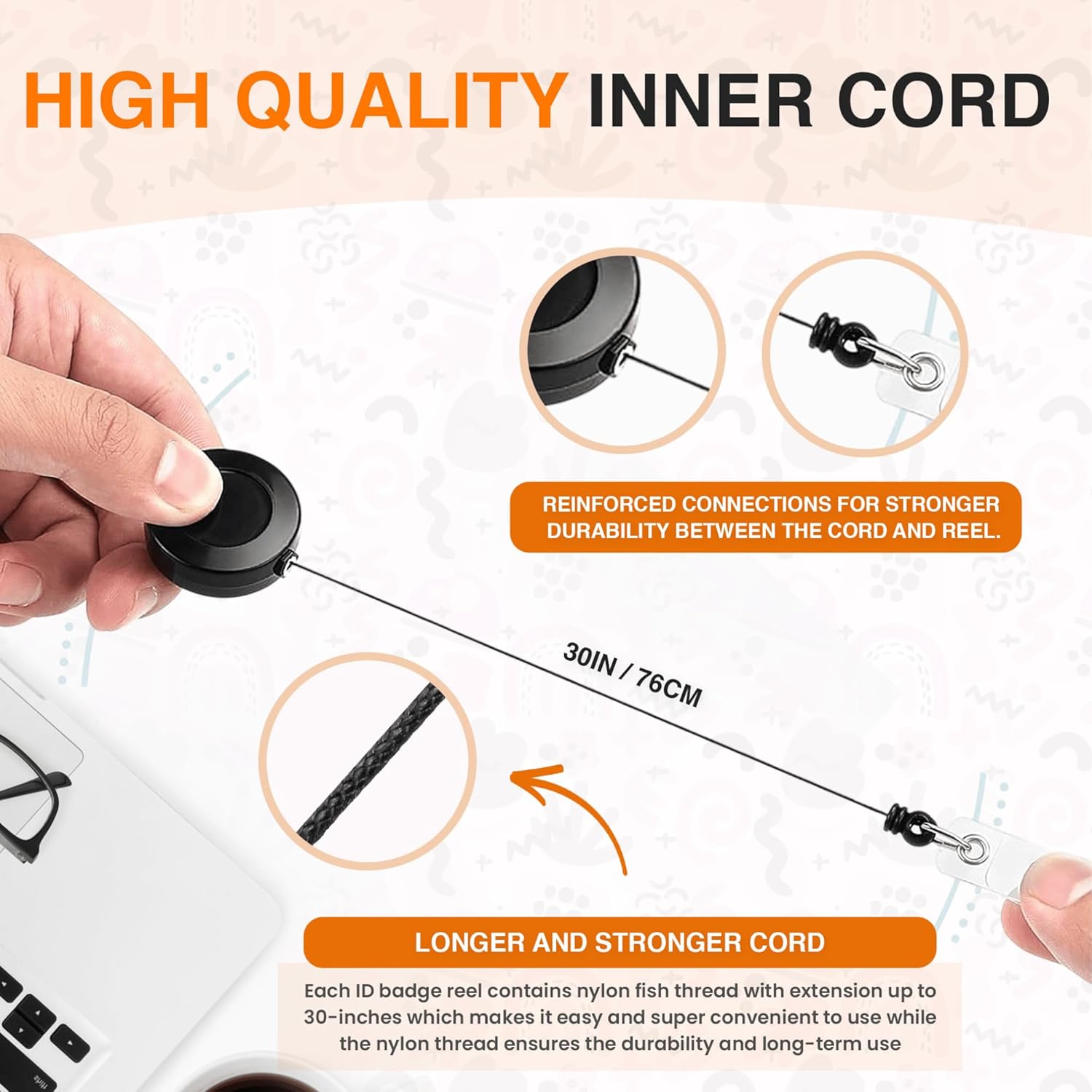• 【TOP QUALITY BADGE REEL】: Our retractable badge clip is made of high-quality ABS shell and high-strength nylon fish thread of badge clip with 30-inch extension makes retractable badge reel easier to use your ID card. The spring at the joint of id retractable badge holder can reduce the tension and effectively prevents the cord from breaking. All above advantages make it durable