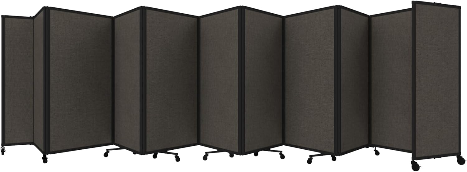 - THOUGHTFUL DESIGN: Made to roll around easily on wheels, this portable room separator also features locking casters to hold it in place. It comes with a trackable surface, sound-dampening fiberglass panels and a folding design for easy storage.