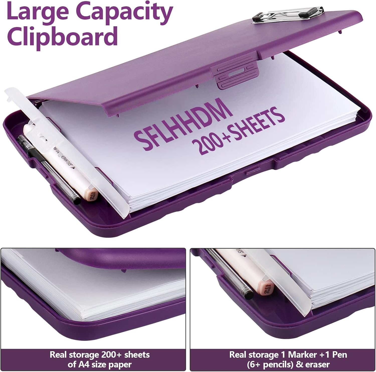 - High Capacity: Clipboard design with storage space, can securely hold up more than 200 letter-sized documents, it has twice the capacity of other clipboards. Have a pen holder at the bottom of the clipboard case, can holds up to 6 pencils