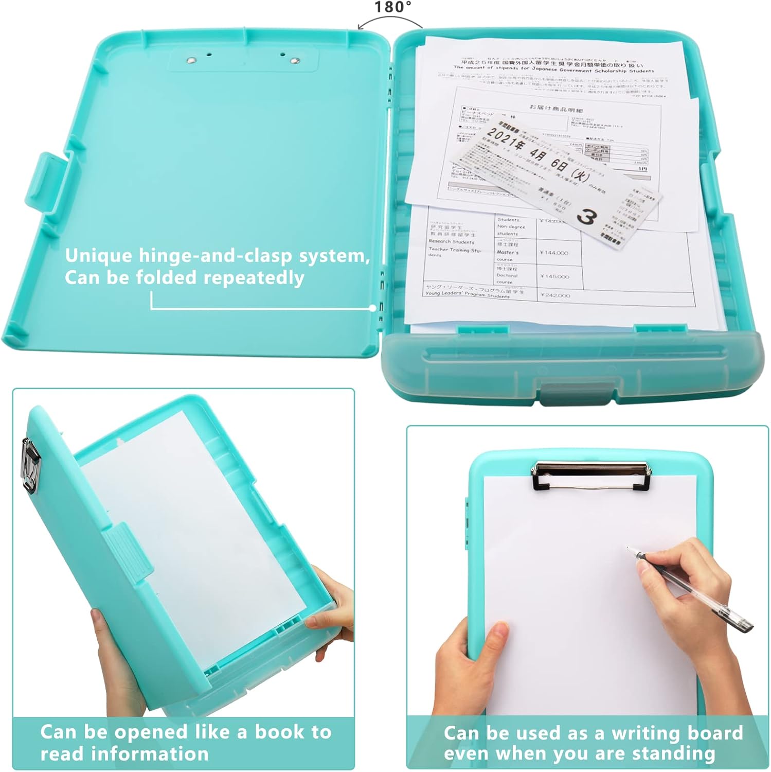 Clipboard with Storage,A4 Clipboards with Pen Holder,Heavy Duty Plastic Storage Clipboard with Low Profile Clip,Nursing Clipboards Folder Side-Opening,Smooth Writing Clip Board for Office-Blue Green