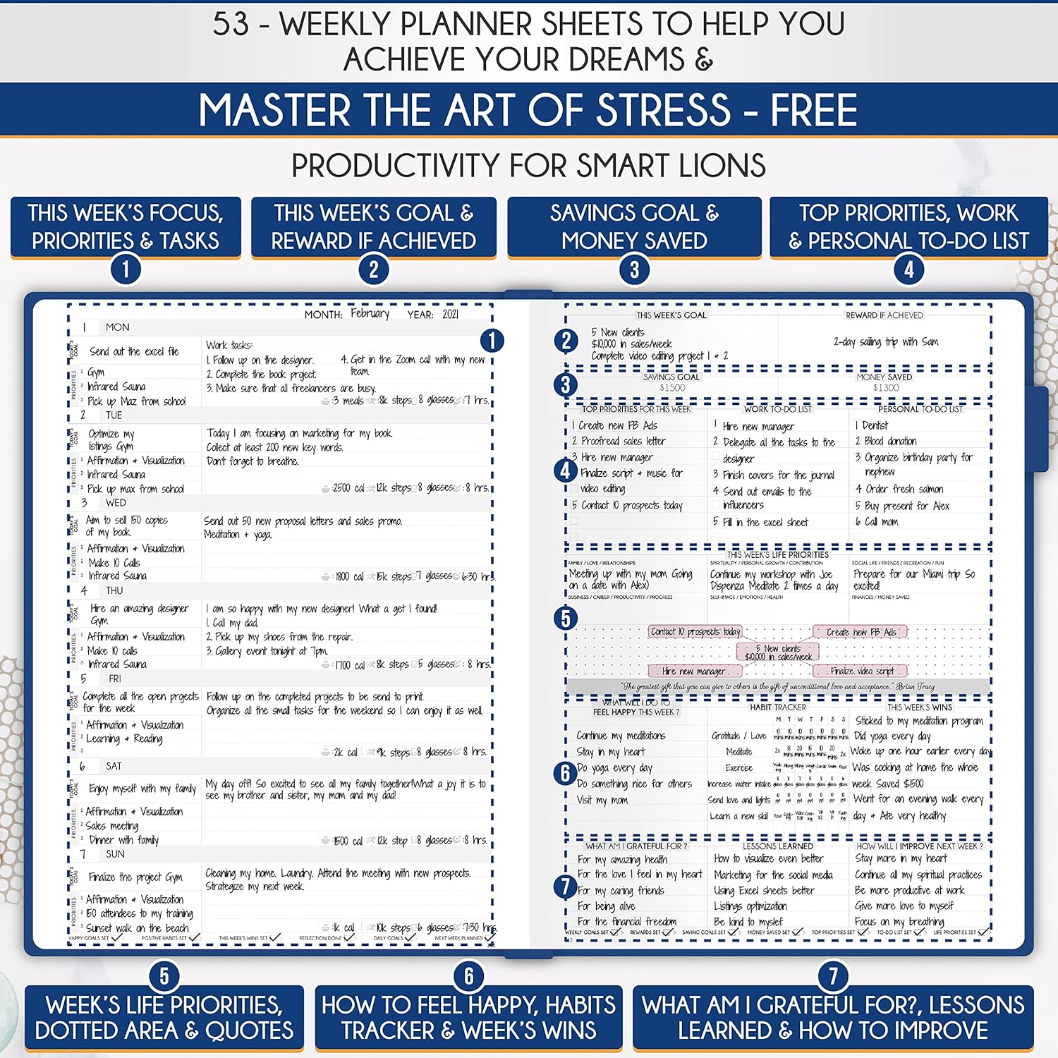 - Daily, Weekly & Monthly Planning - Designed as a versatile journaling organizer and personal organizers), this A4-sized planner for men offers 256 pages of life transformation tools, including 53 weekly spreads, 12 monthly planners with budget section layouts, and dedicated budget journal pages for financial clarity. It’s also a stylish choice for anyone wanting elegant planner with budget section.