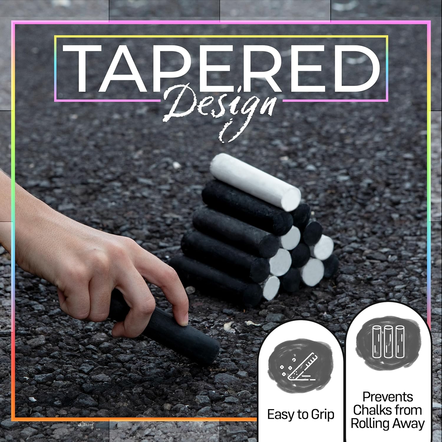 - Easy Grip Jumbo Chalk: Our jumbo sticks have a tapered shape, perfect for little hands and preventing them from rolling away. Great for creating art on sidewalks or marking concrete, making them a must-have chalk and sidewalk chalk bulk enthusiasts