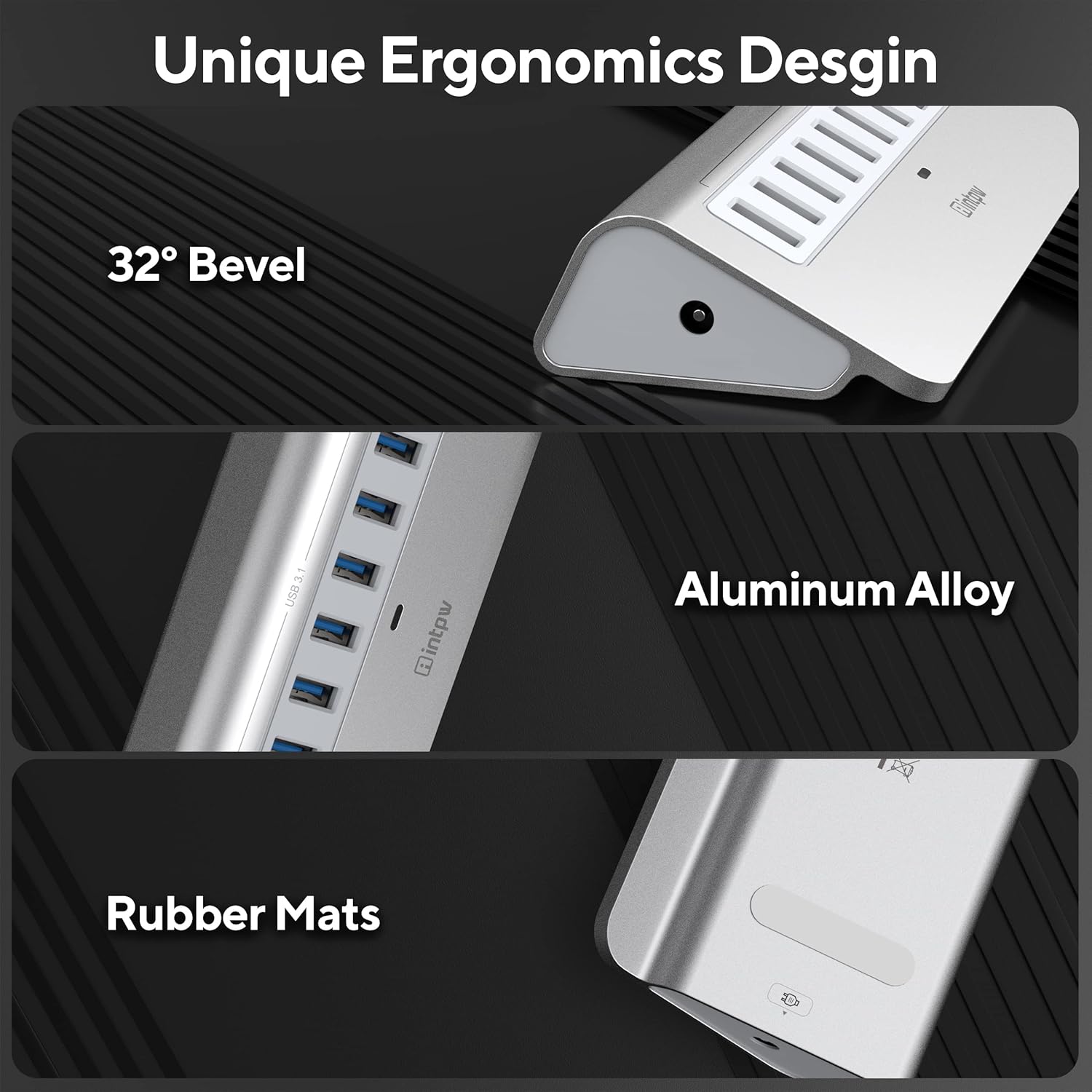 Powered USB Hub, intpw 10 Port USB 3.1 Hub with 10Gbps Data Transfer, 36W(12V/3A) Power Adapter, USB Type A and Type C Cable, Aluminum USB Hub for Laptop, MacBook and Desktop Computer