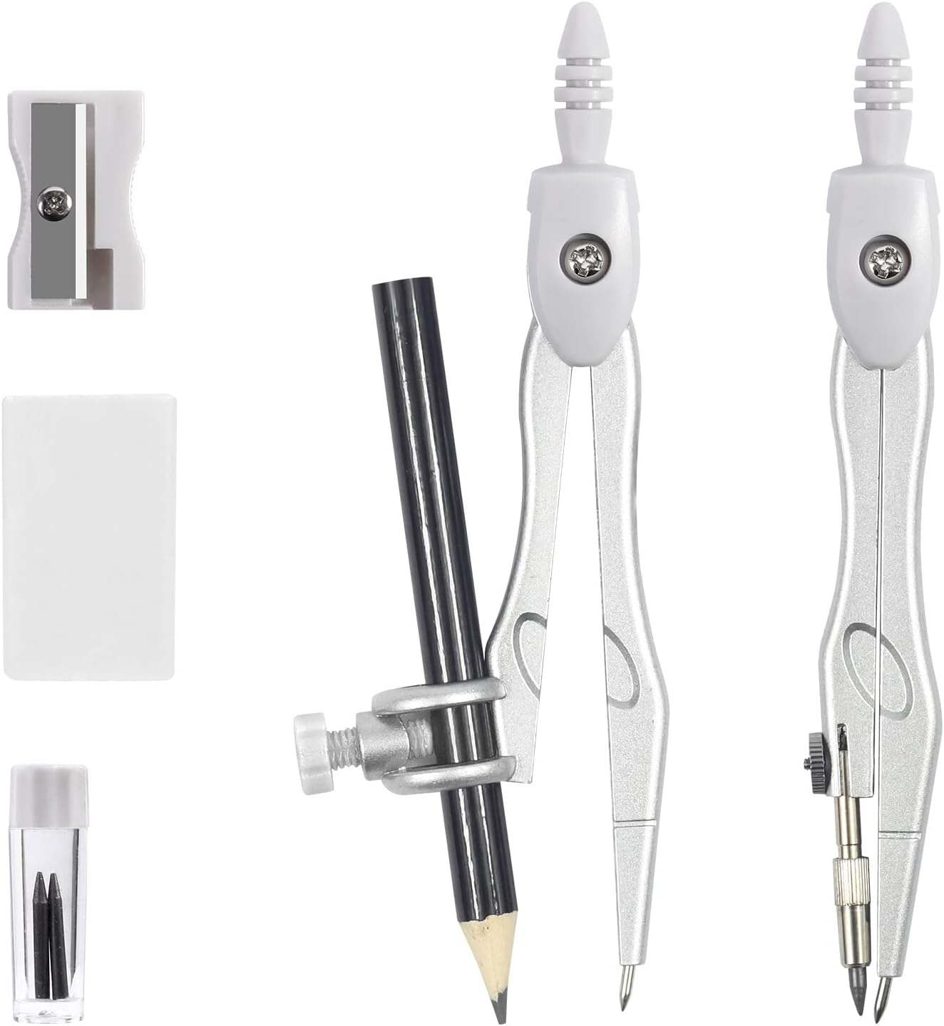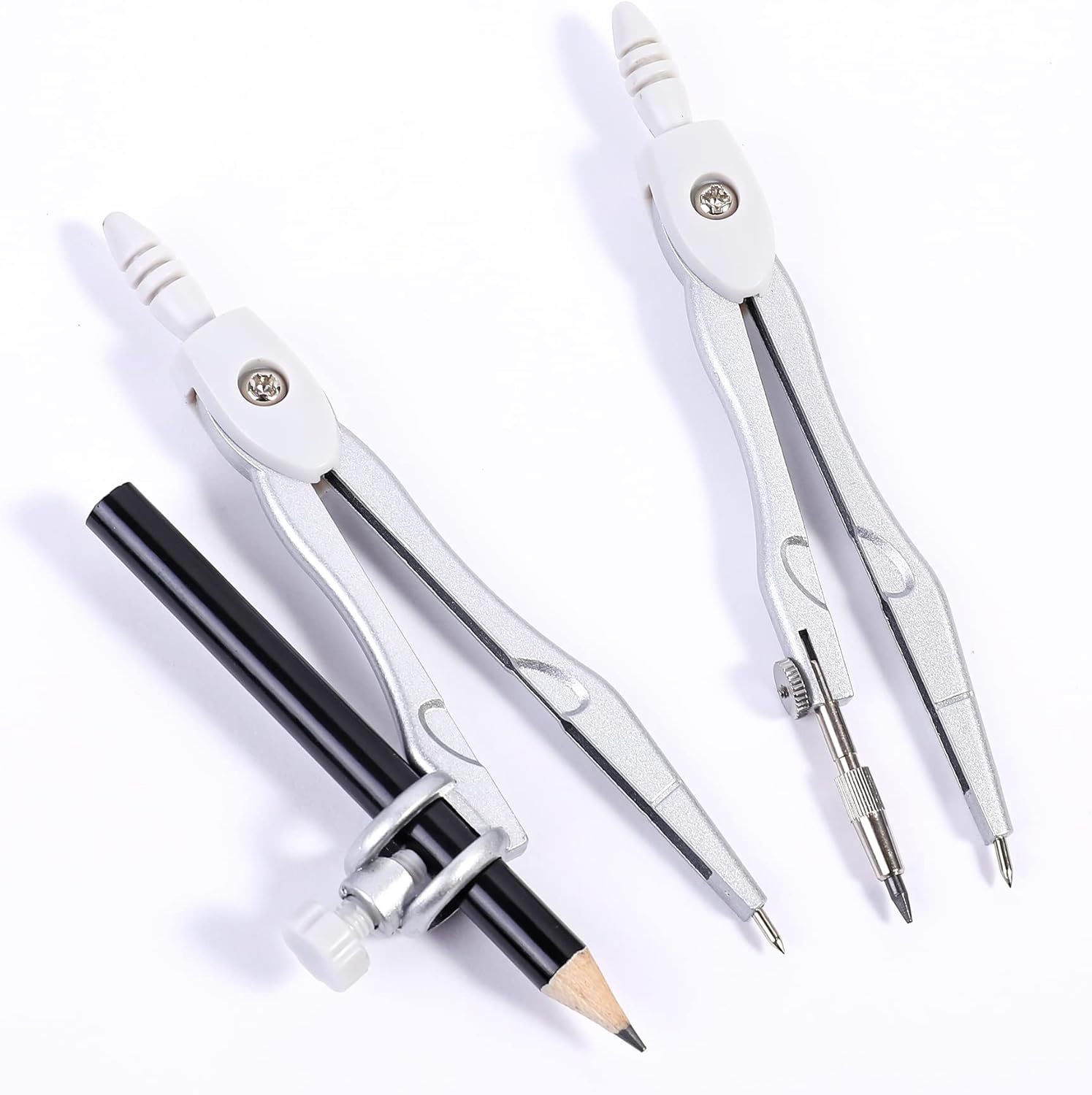• A Practical Compass Geometry Set:Long-Lasting metal compasses will not bend, Ergonomically designed compass head is comfortable to hold, Universal Holder Compass work with any standard sized pencil or pen
