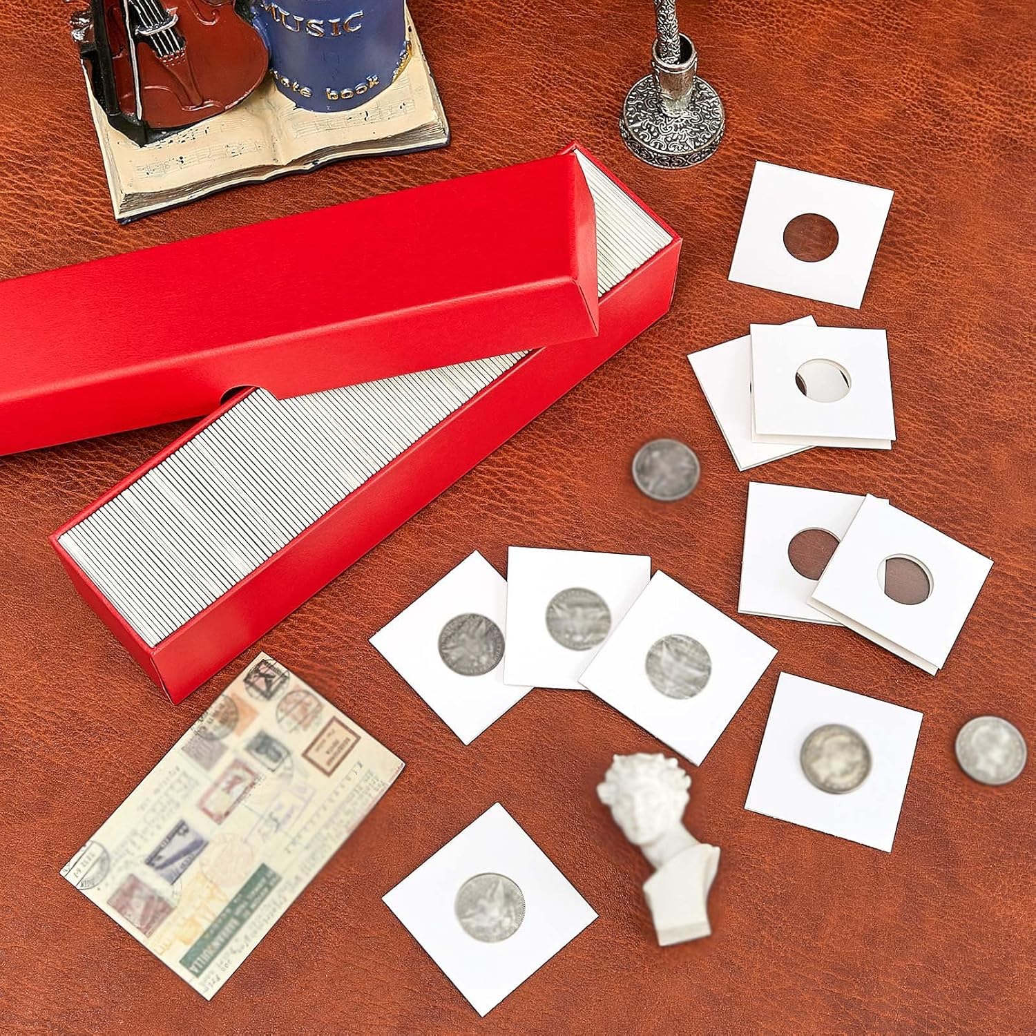 Teling 16 Pcs Coin Storage Box 2x2inch Flip Holders Collectors Coin Supplies Holders for Cents Collection Cardboard (Red)