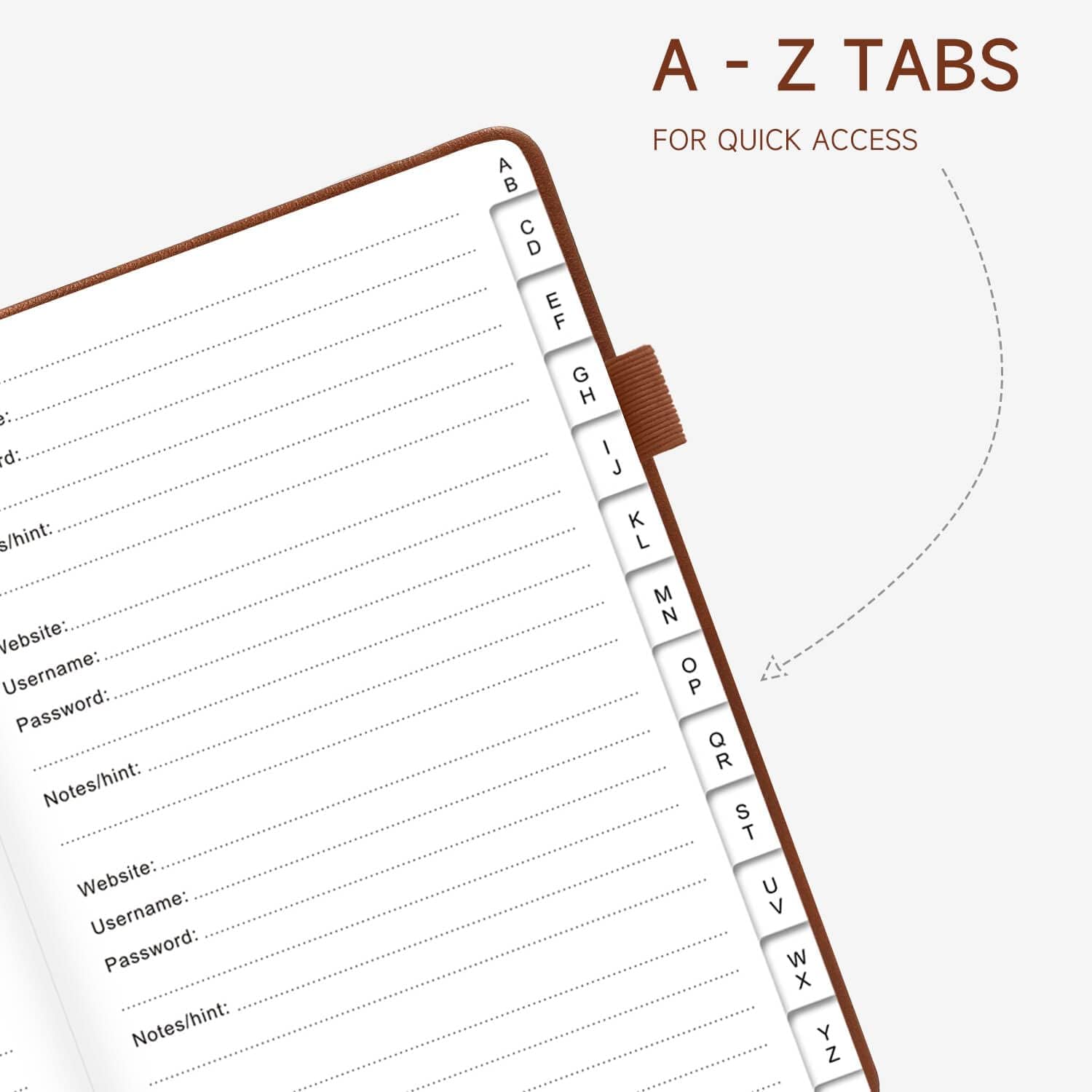 Password Book with Alphabetical Tabs – Hardcover Internet Address & Password Organizer – Password Keeper Notebook for Computer & Website – 5.2 x 7.6" Log-in Password Journal w/Thick Paper (Brown)