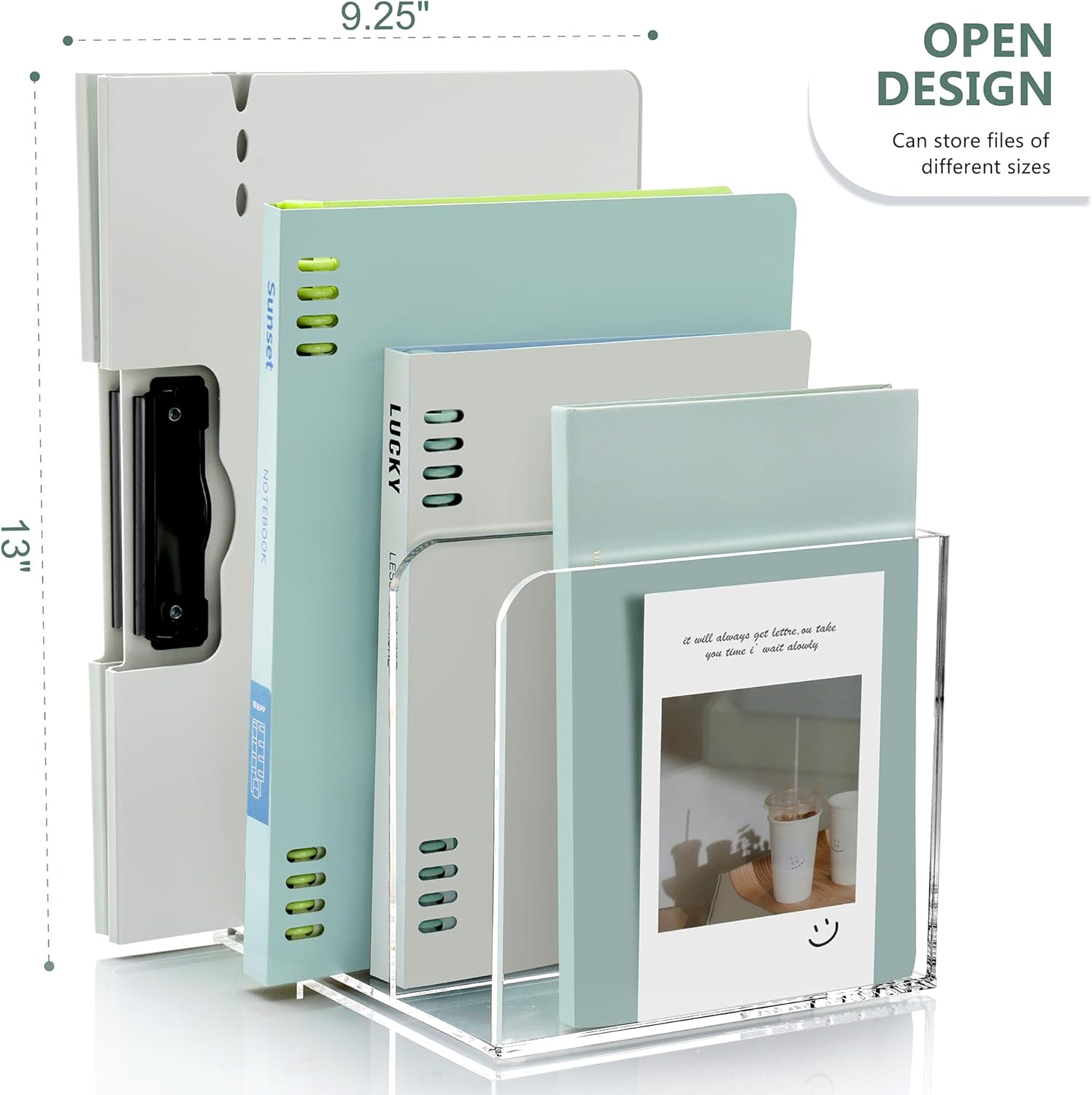 - CLEAR ACRYLIC FILE FOLDER : Bright and transparent overall, with no fear of themes, use s desktop file shelf on your desk to store all your important documents, documents and documents, while still blending in with any decor to stay stylish!