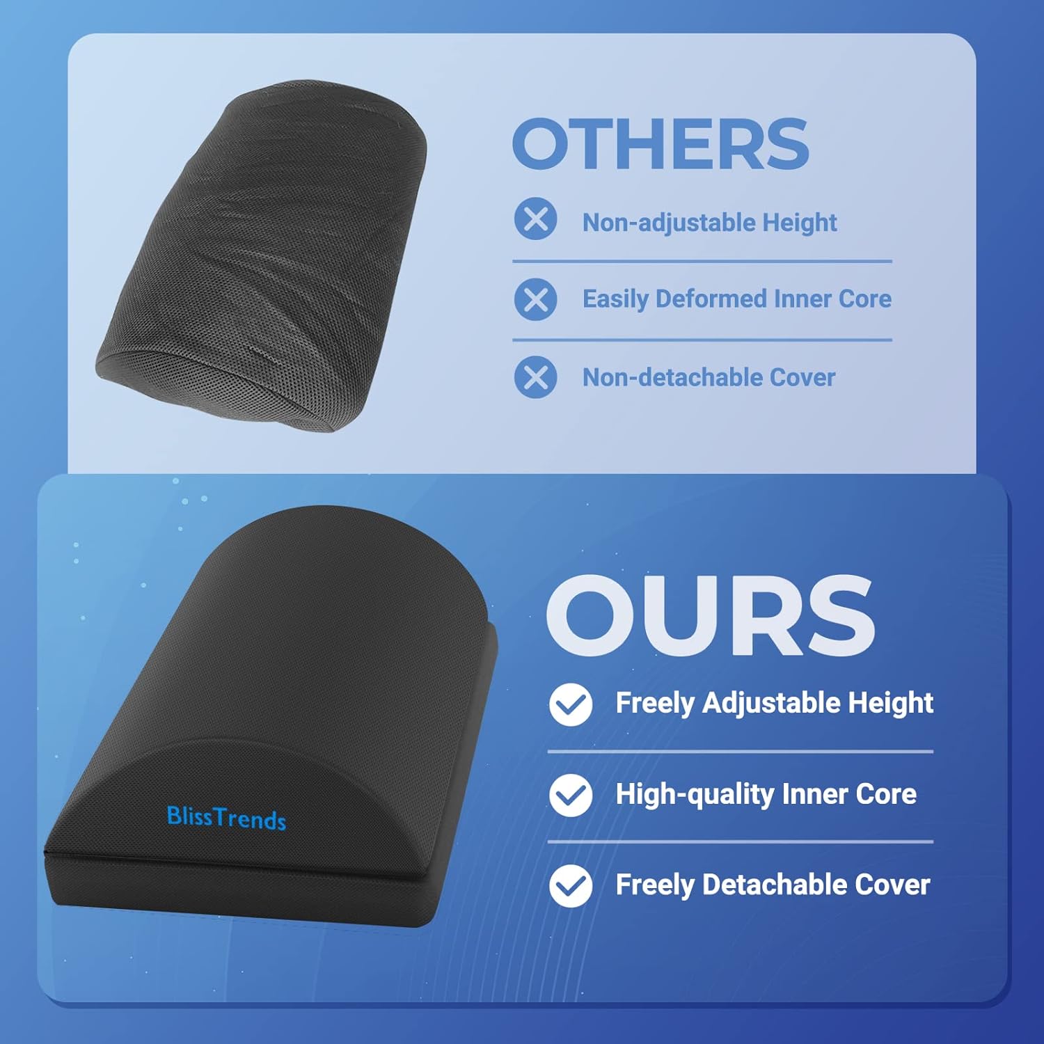 - 【Comfortable Experience】The BlissTrends foot rest has two layers: the lower layer measures 16.2"*9.9"*2.0", and the upper layer is 3.7" thick. The foot stool is ergonomically designed with sufficient height and curvature to better relieve the pressure on your limbs and discomfort when sitting for long periods of time.