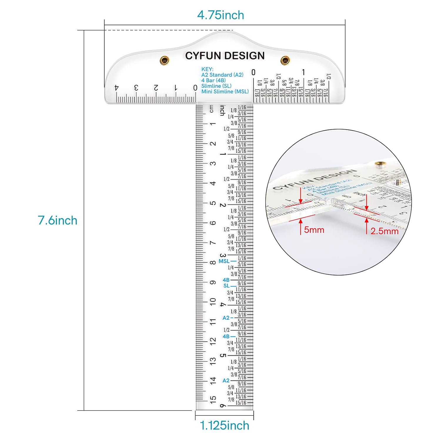 - PACKAGE INCLUDES: 2 pieces T-Shape transparent rulers in one package, the size of this ruler is 7.6x1.25x4.75inch 5/2.5mm in thickness,measures range is 6 inches/ 15 cm