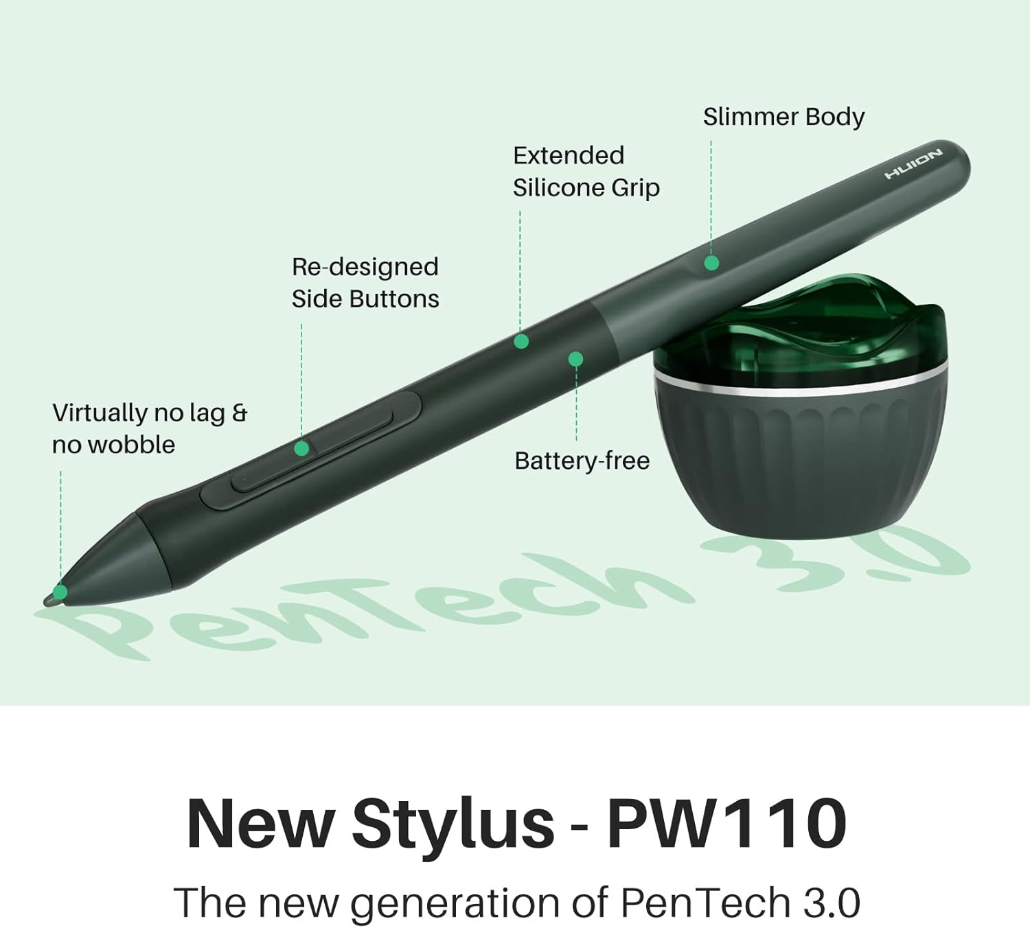 - Ergonomics Pen Design: The new digital stylus PW110 is improved designed with slimmer body, soft silicone grip & accessible side buttons for better ergonomics & comfort.