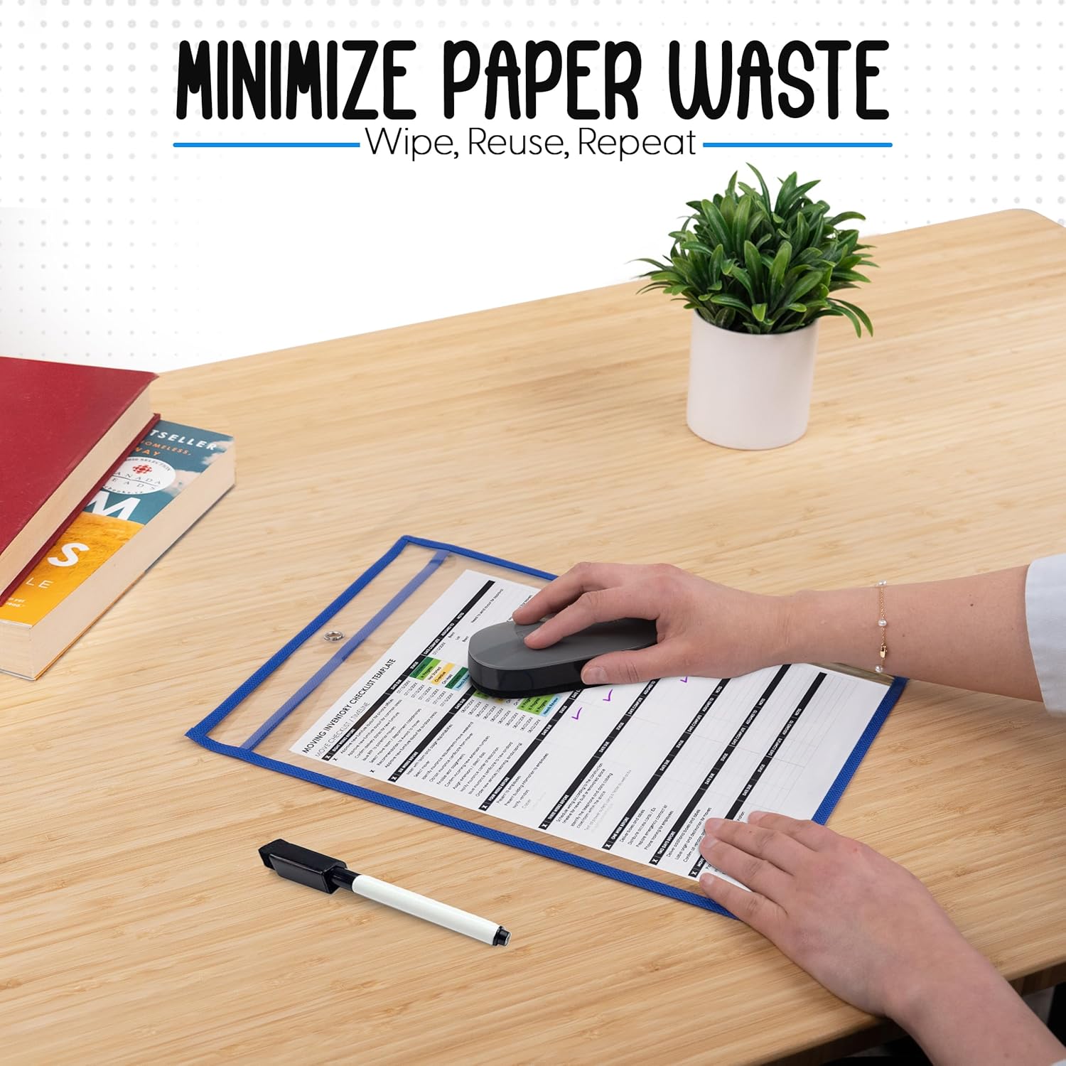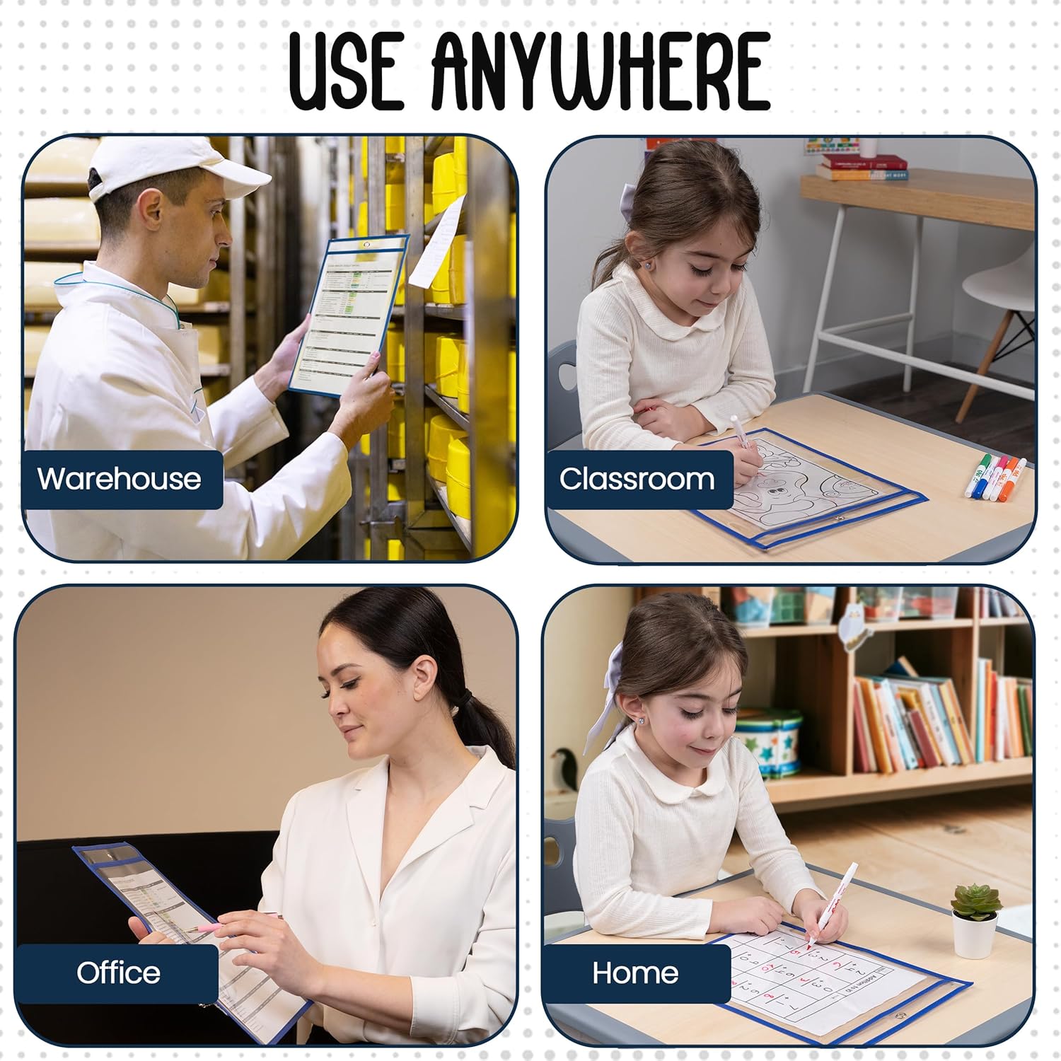 - Reusable - With their dry erase surface, the clear document sleeves are completely reusable. Simply insert the sheet and endlessly write on the front of the ticket holder and erase it when no longer needed.