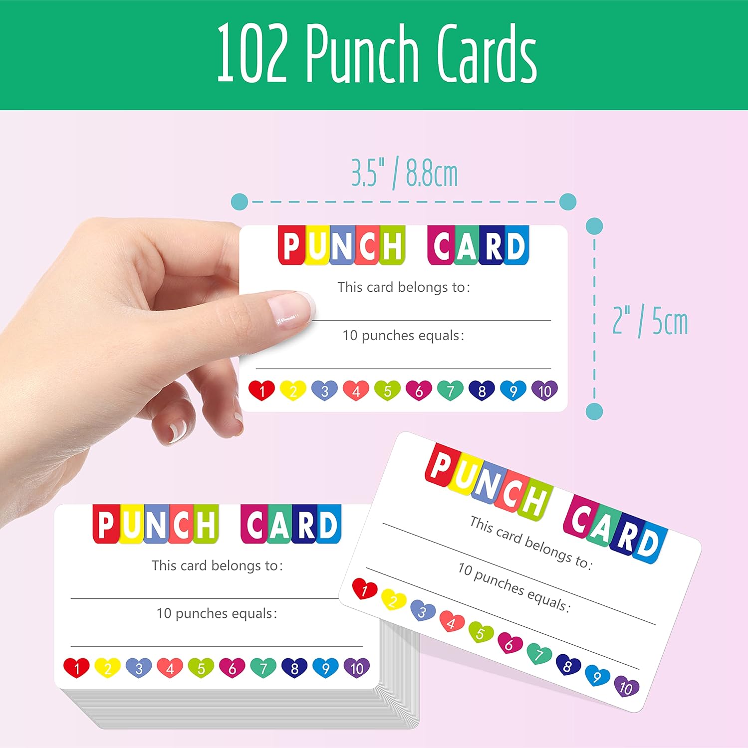 102 PCS Punch Cards, Heart Shaped Incentive Reward Cards Business Size Student Award Cards Boost Creativity & Skills Development for Business, Classroom, Kids Behavior, Students, Teachers, 3.5” x 2”