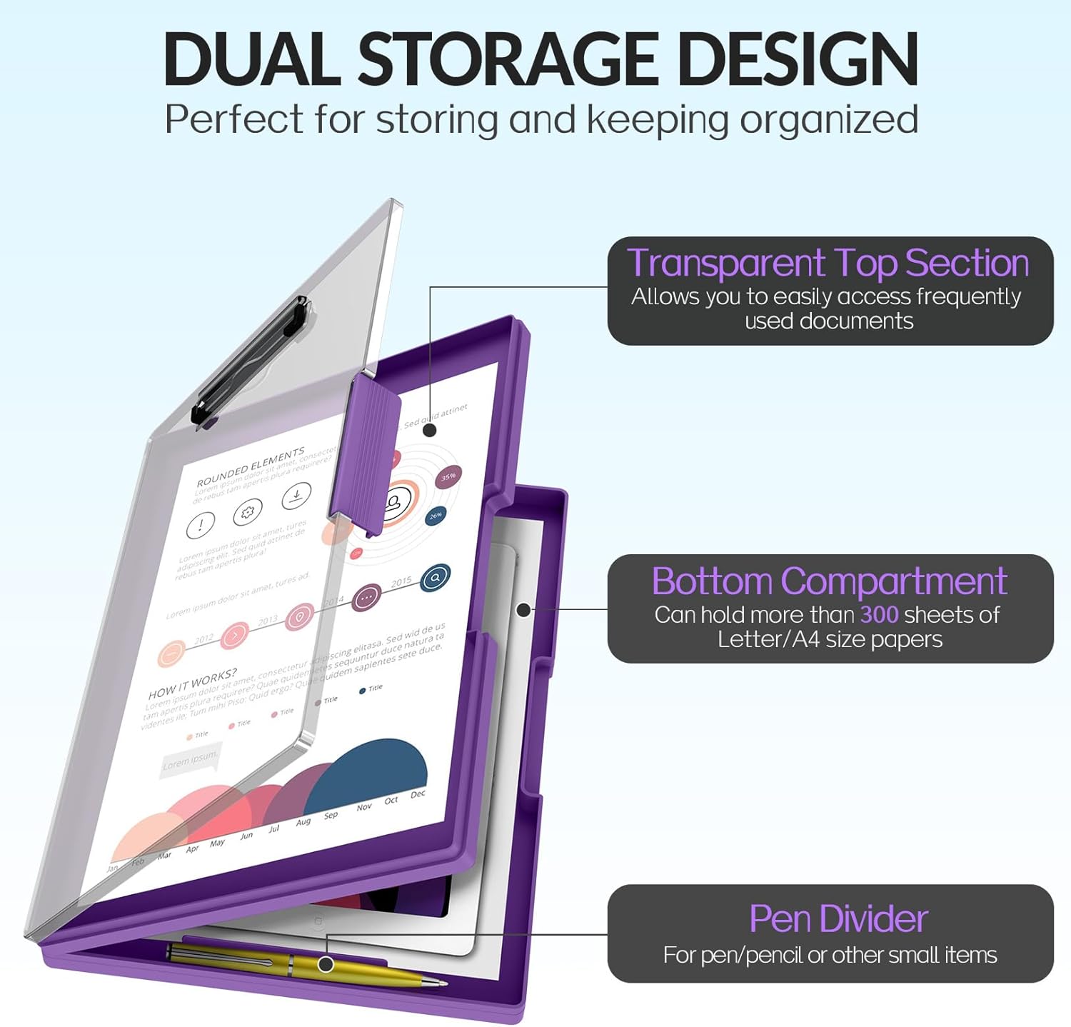 - Dual Storage Compartment: Dual-Layer design ensure roomy space for various needs of storage. Keep frequently used documents on the top compartment and store more than 300 letter-sized /A4 sheets in the spacious bottom compartment