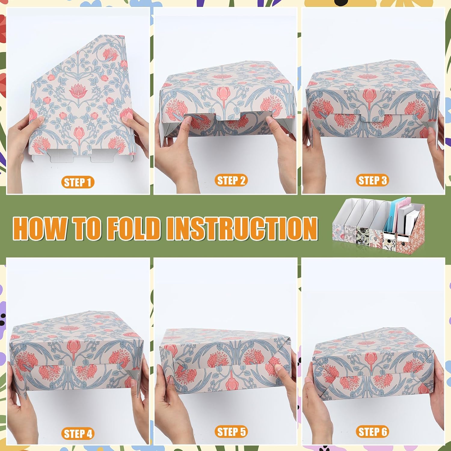 PerKoop 12 Pcs Magazine File Holder Foldable Decorative Cardboard File Folders 6 Patterns Floral Colored Magazine Rack with Printable Sticker Labels for School Office Home Desk (Floral)