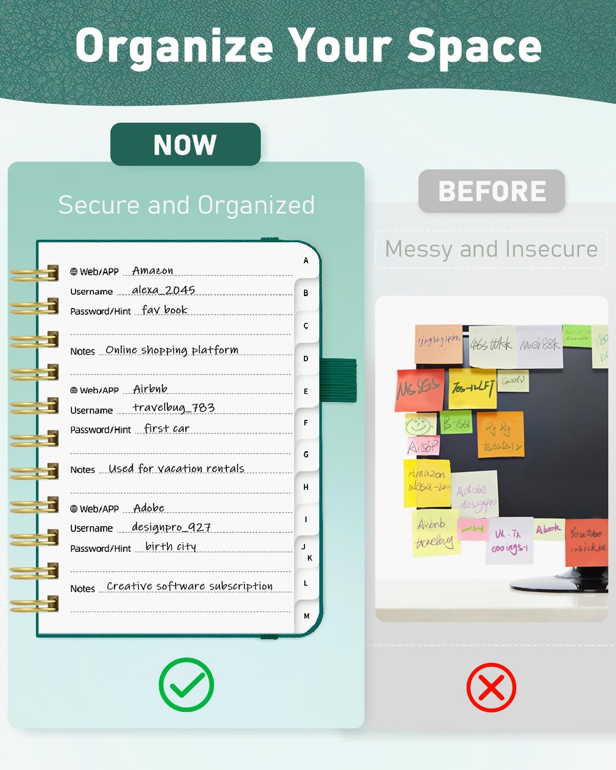 - Never Forget Passwords Again: Record 468 passwords, with space for updates; Say goodbye to password woes! Secure Pass Keeper Book keeps you covered
