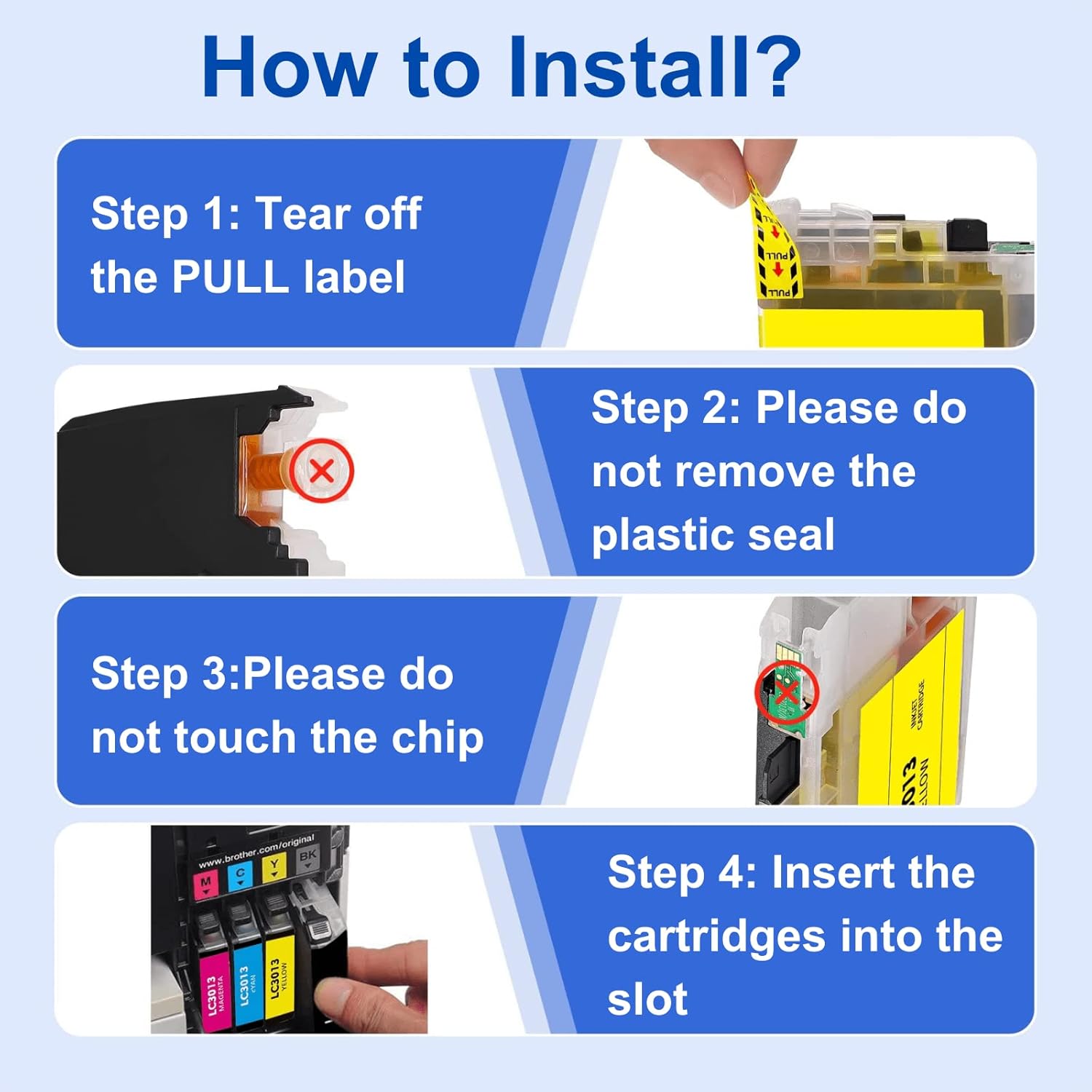 - OUR ADVANTAGES: Our compatible BROTHER LC3013 XL ink cartridges are having great value with reasonable cost; excellent ink quality will not clog the printhead, fantastic printing performance with vivid color and clear text; upgraded chip; fade-resistant; easy to install with zero hassle; do not clog printhead; fast recognition; wide application for various occasions.