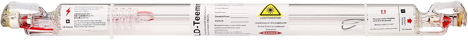 - 【Parameters and Features】: CO2 laser tube Power: 100w /watt, Outer Diameter: 80mm, Length: 1450mm, This laser tube has Wire Pre-connected and with heat shrinkable sleeves for a higher level of safety, and Add silicone fixing ring to avoid the problem of easy to crack before. Universal for AC 110V and 220V. The laser tube adopts inner discharge tube coated with nano gold catalyst, power is improved.