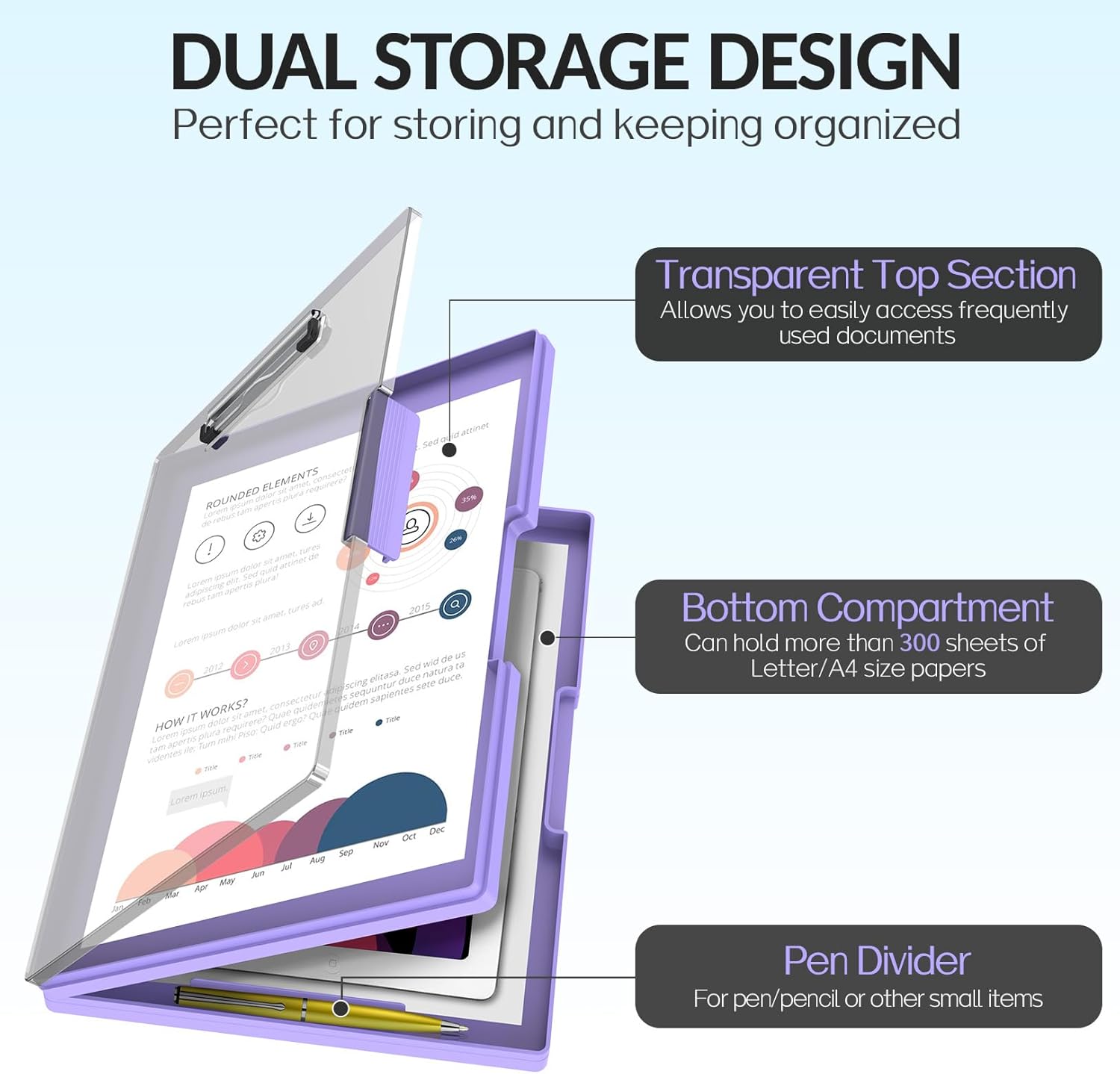 - Dual Storage Compartment: Dual-Layer design ensure roomy space for various needs of storage. Keep frequently used documents on the top compartment and store more than 300 letter-sized /A4 sheets in the spacious bottom compartment