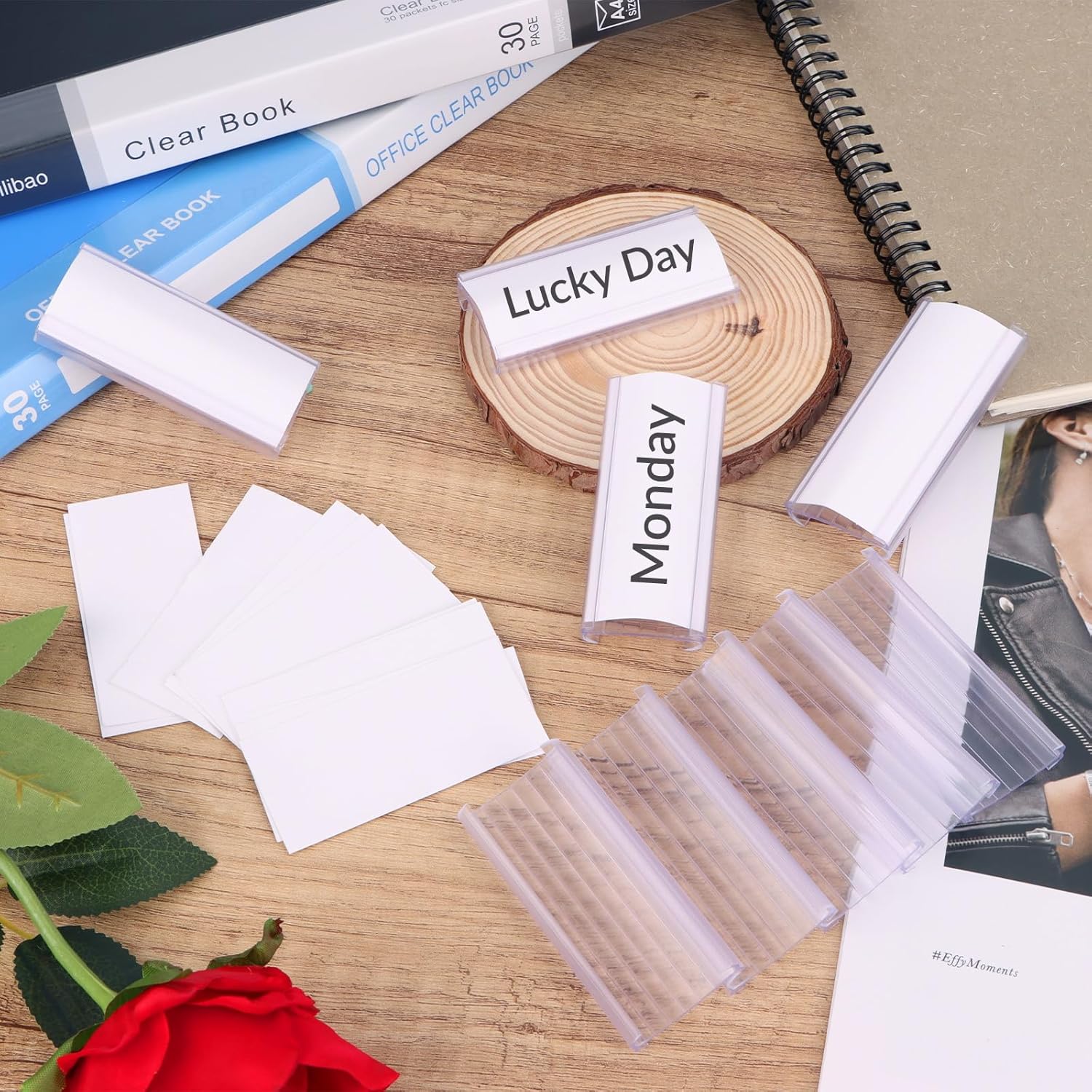 • 【High-quality Material】Clip on labels for storage bins is made of high-quality PVC plastic- clear, sturdy and quality, not easy to break or deform, serviceable and reusable, and clear and transparent window design makes you can see the label simple.