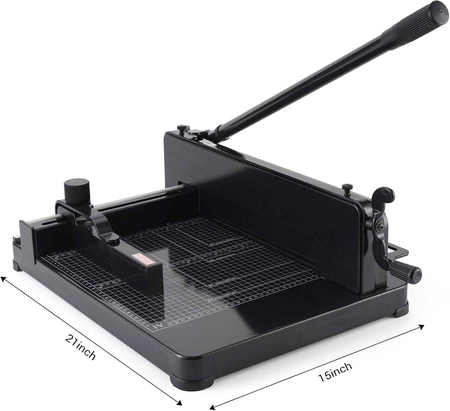 • ★【Solid Steel Construction】:Solid steel construction ensures heavy duty paper cutter will last a long time and you'll be able to tell the moment you pick it up. Rubber feet at each corner stop the heavy duty paper cutter from sliding during use, and a removable handle allows for easier storage.