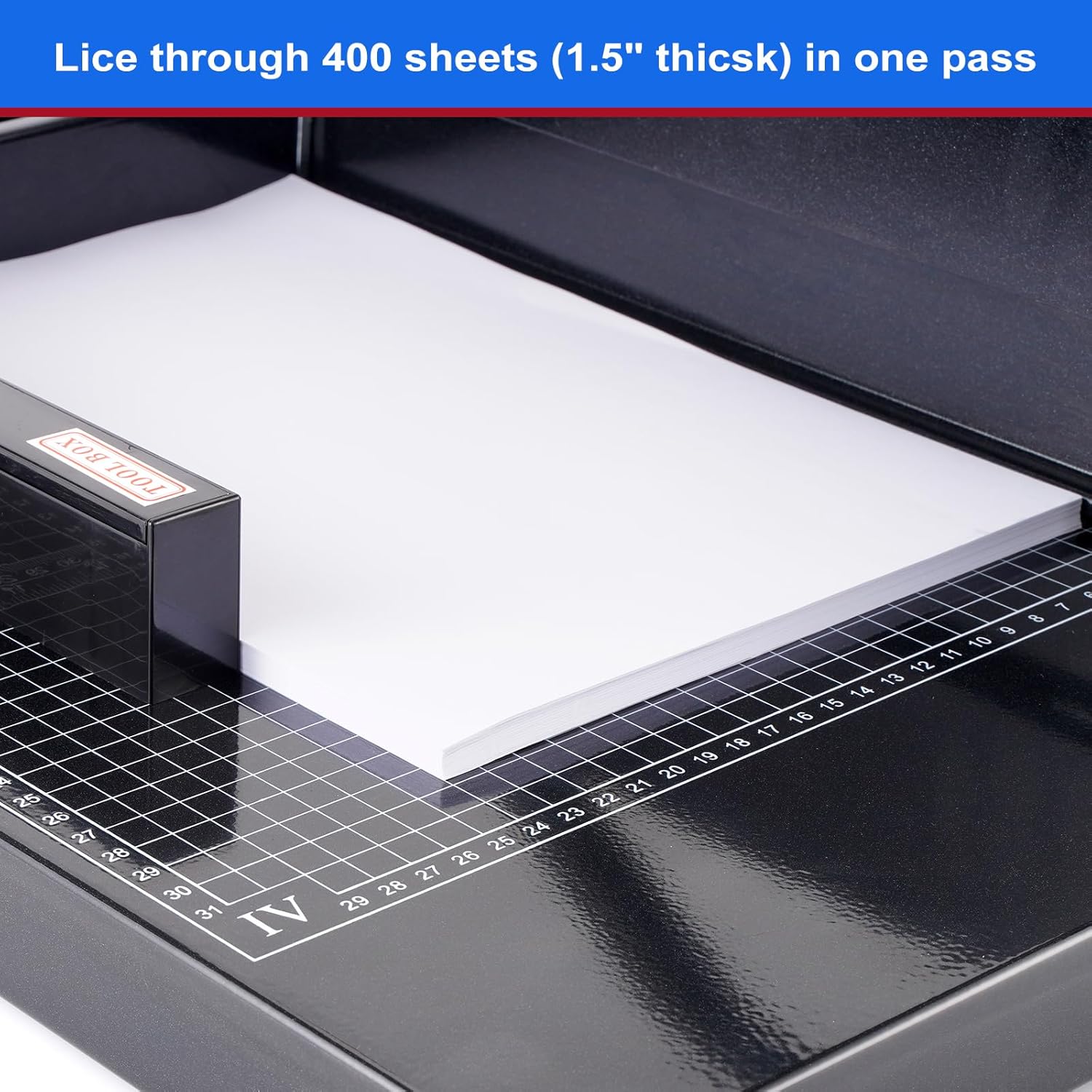 • ★【Wide Application】Paper cutter heavy duty with a maximum cutting length of 12” allows to cut up to 400 sheets of paper (for 80g A4 Paper) once; Besides common paper, our heavy duty paper cutter can also cut something like soft PVC, leather, non-woven fabric, bubble film, fabric pearl cotton and etc, meeting your different cutting needs to the greatest extent& suitable for homes, classroom, offices, companies, printing factories, copy shop, etc..