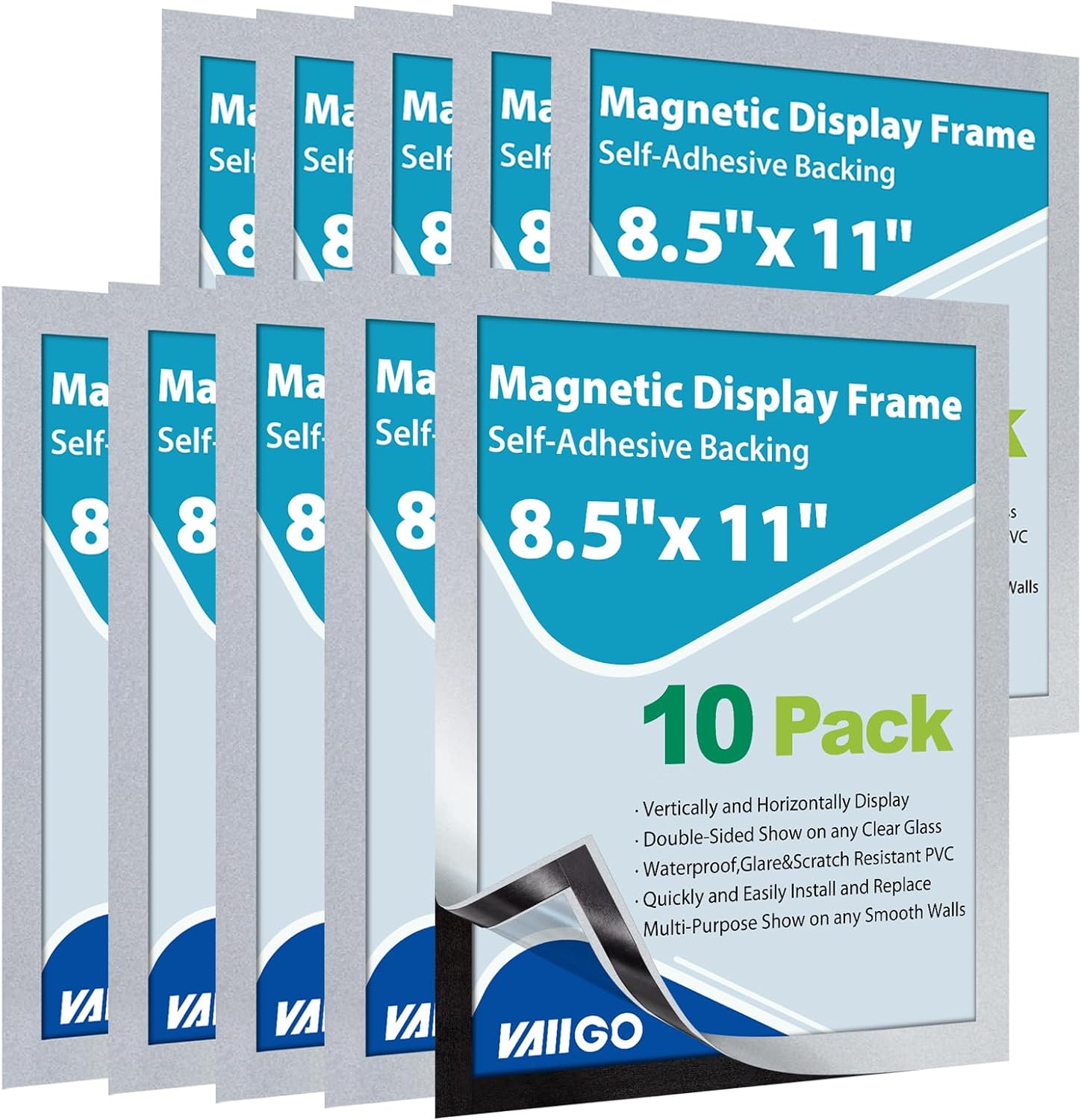 10Packs Magnetic Sign Holder 8.5 x 11, Self Adhesive Display Picture Frame with Magnetic Frame and Clear PVC for Office Store Home Door Window Refrige Magnetic Paper Holder, Silver