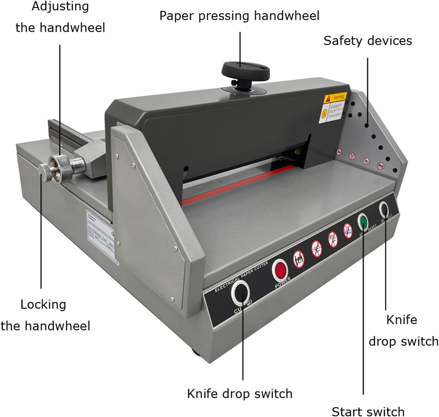 • 【Intuitive Operation】This machine adopts manual paper pushing and manual handwheel paper pressing modes, with manual adjustment for more intuitive operation and tighter paper pressing.