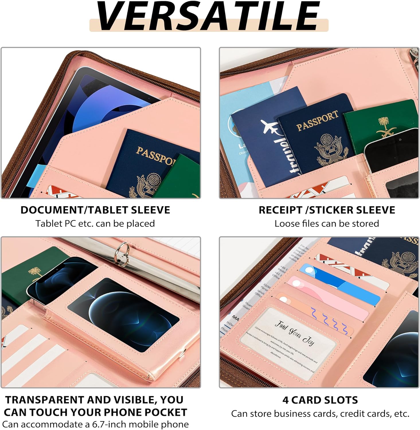 - Multifunctional Clipboard & Organizer Portfolio: Clipboard, Binder & Secure Storage! Seamlessly combine a sturdy clipboard (holds 80-100 sheets), a 1 inch 3 ring binder (fits 175+ papers), a zippered main compartment, and a dedicated tablet sleeve in one sleek leather portfolio. Never juggle separate tools again - manage documents, notes, devices, and essentials effortlessly