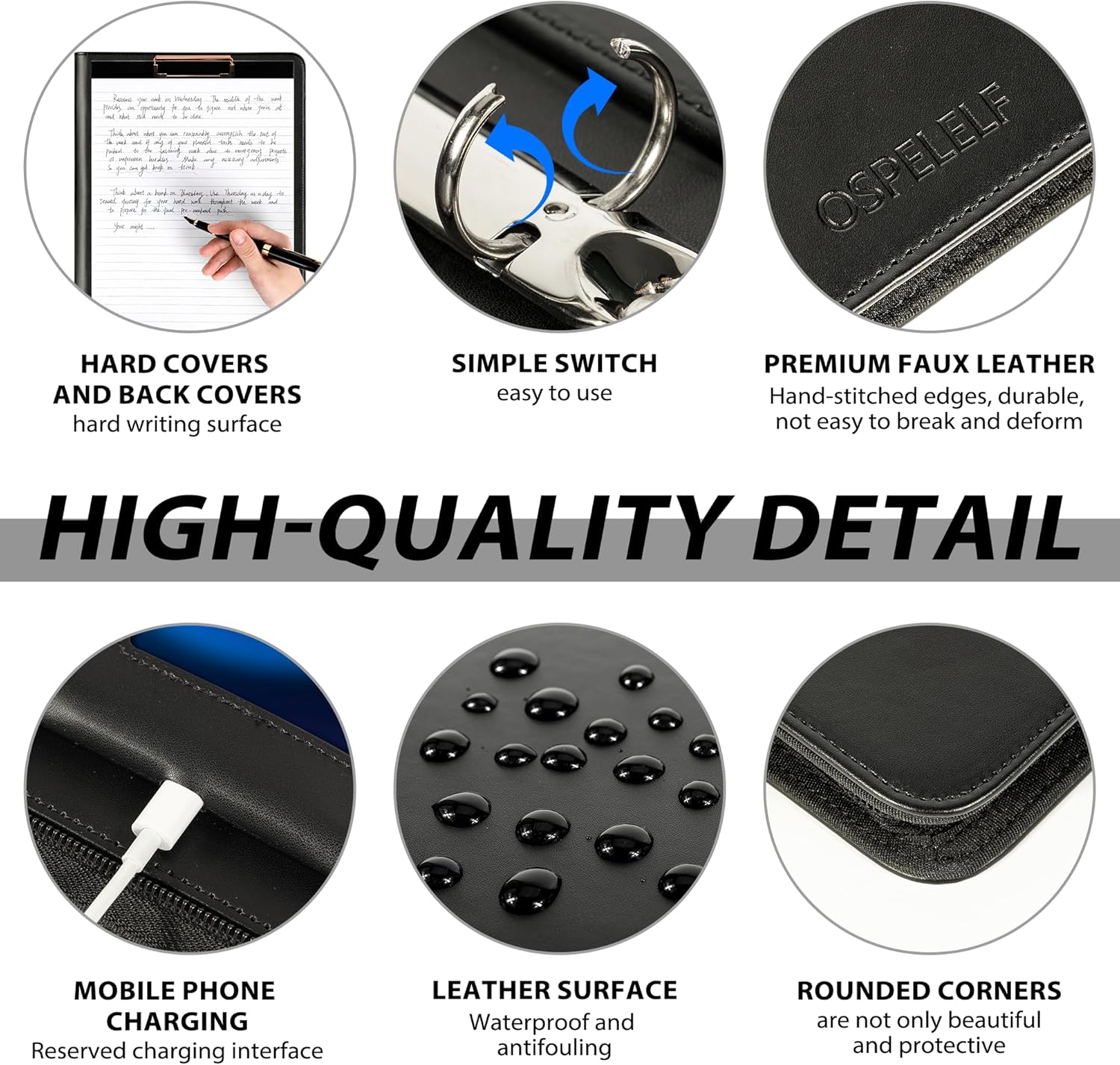 - Durable Clipboard Binder: Crafted from high-grade, water & stain-resistant faux leather with reinforced hand-stitched edges and hardcover backing. Rounded, wear-resistant corners shield against bumps. Maintains a sharp, professional look for years