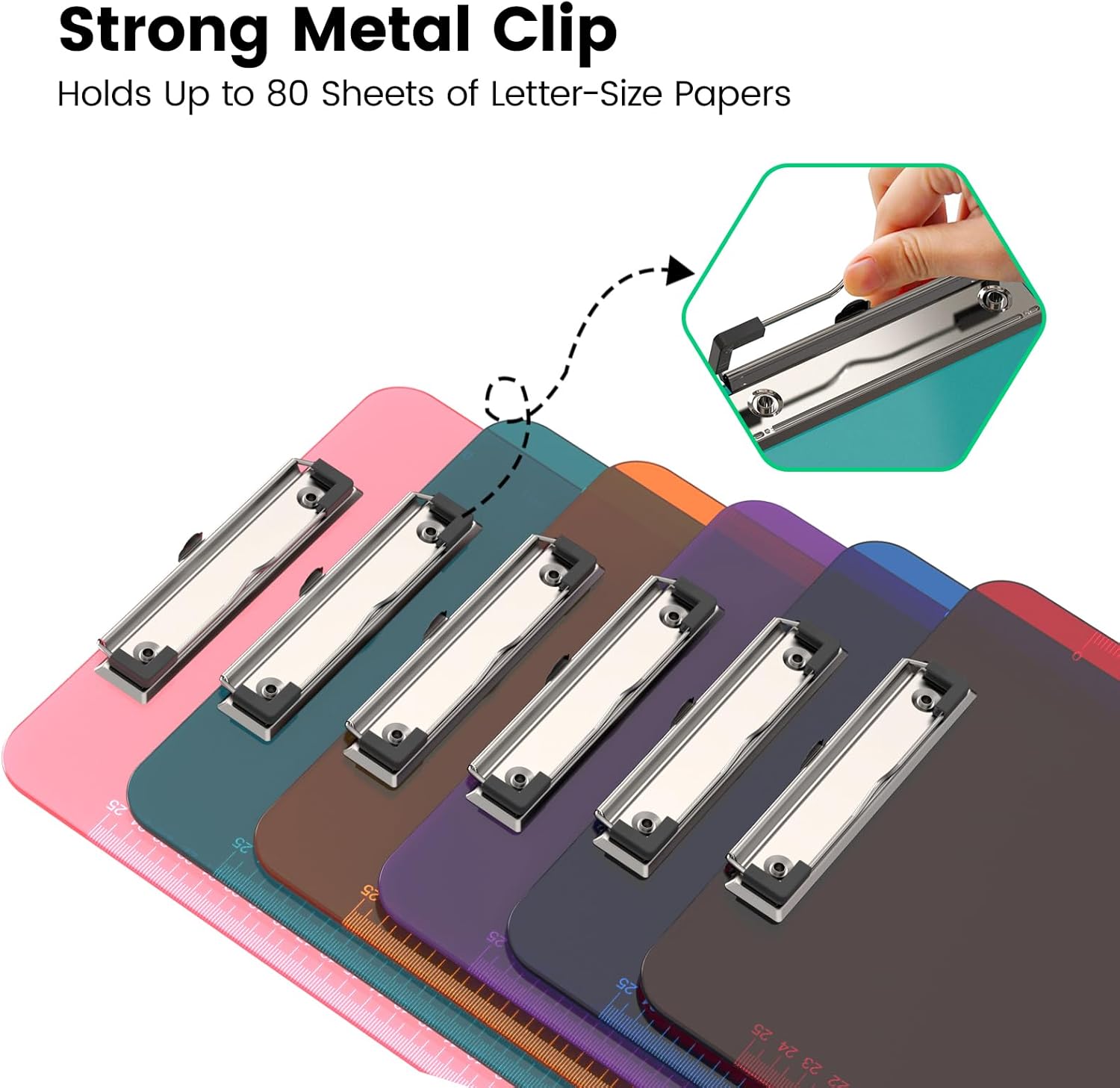 - Easily Stackable: The Color Clipboard use low profile clip of our plastic clipboards makes the bulk clipboards easy to stack. Sturdy metal clip to hold up to 80 letter size / A4 size pages easily and securely in place