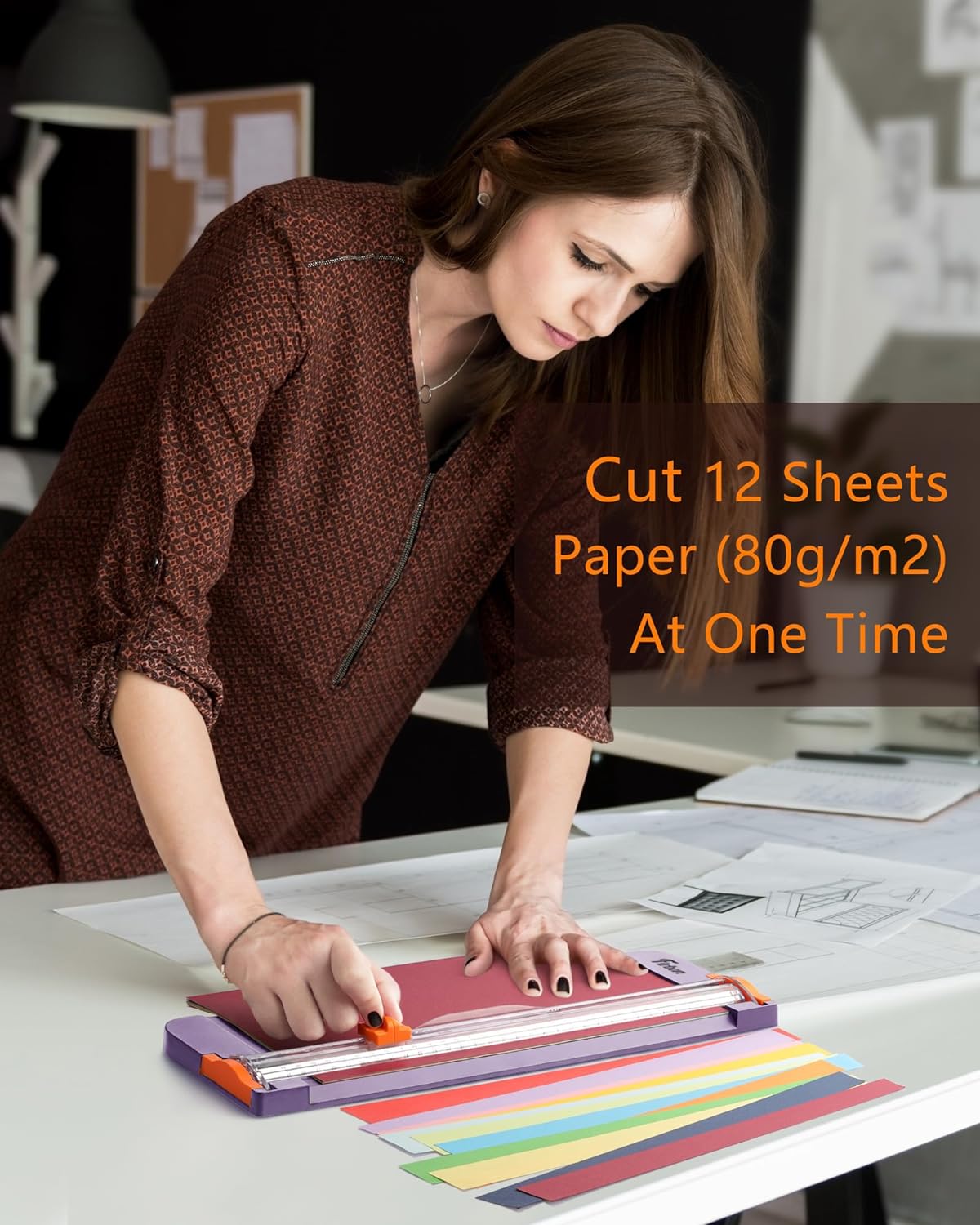 Firbon Purple A4 Paper Cutter, 12 Inch Titanium Straight Paper Trimmer with Side Ruler for Scrapbooking Craft, Paper, Coupon, Label, Cardstock