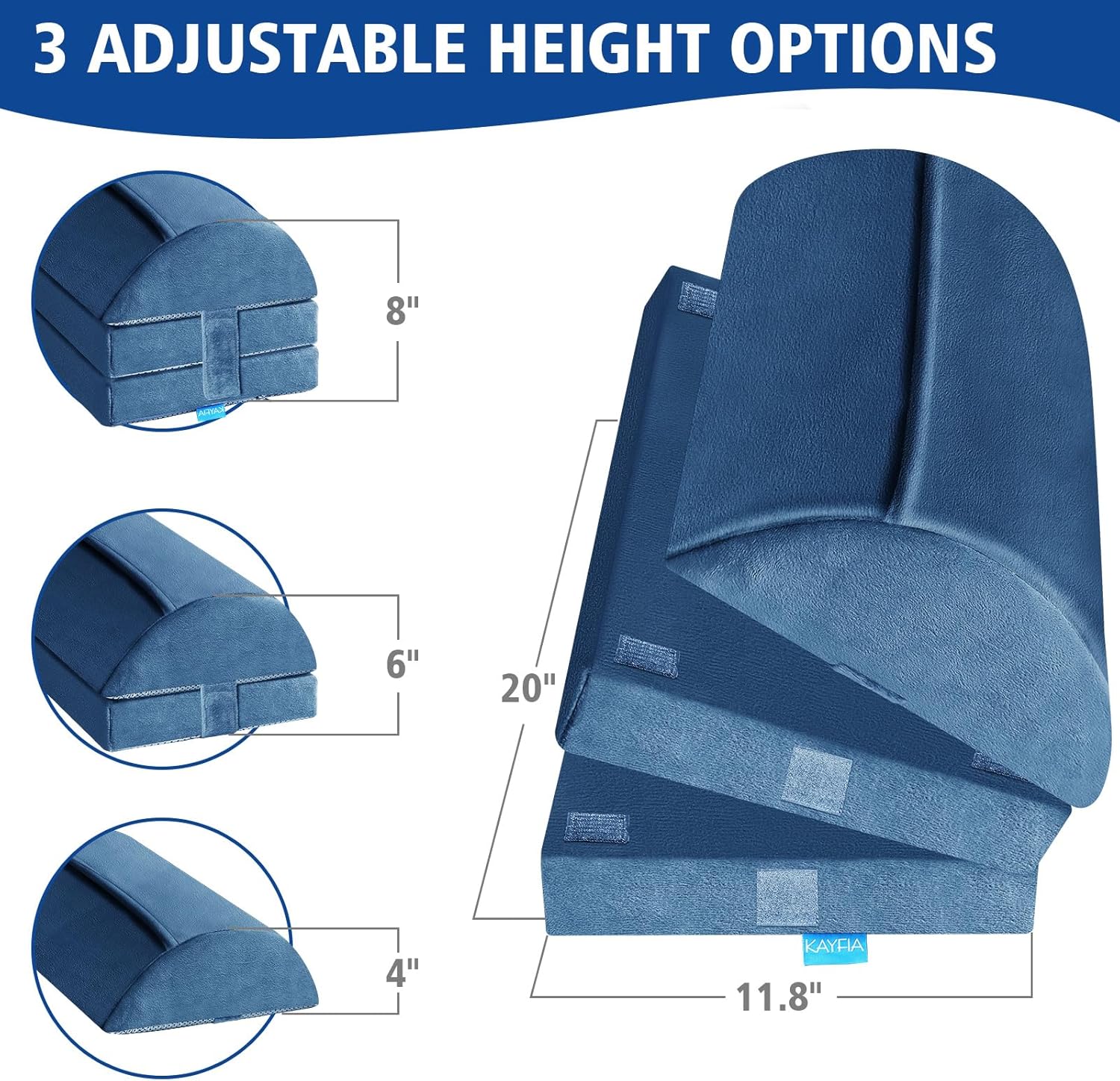- [3 Adjustable Height] KAYFIA foot rest measures 20 "x11.8" x8 "with 3 adjustable height options from 4", 6 "to 8", which has velcro stickers on the lower and side for adjusting the height as needed. The upgraded length allows your legs to spread apart or come together freely.