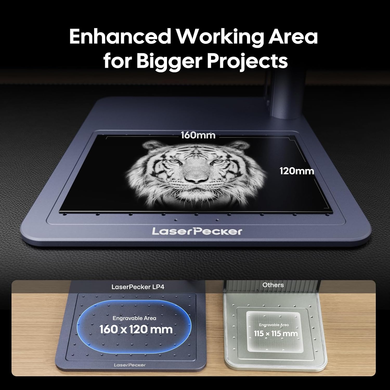 - Versatile Engraver for Business and Personal Use: Including Rotary Extension and Slide Extension, LaserPecker 4 is the world’s first dual laser engraver featuring the largest working size of 160 x 300 mm (expanded by Slide Extension). It can engrave multiple materials or pieces simultaneously. Rotary Extension enables engraving of irregular subject, round and curved items like bottles, mugs, tumblers, rings, vases etc
