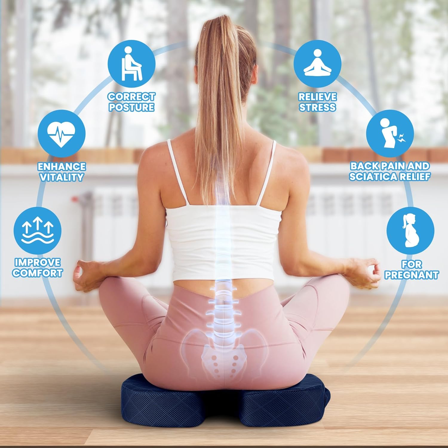 TushGuard Seat Cushion - Memory Foam Cushion for Office Chair, Car Seat, Airplane, Bleacher - Sciatica & Coccyx Pain Relief Desk Chair Cushion for Long Sitting Office Workers, Car Drivers(Blue)