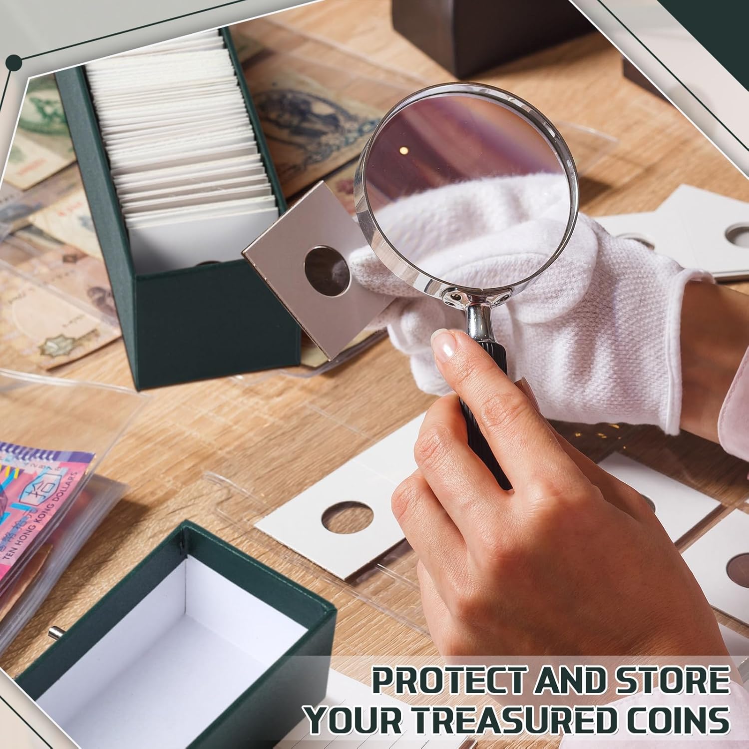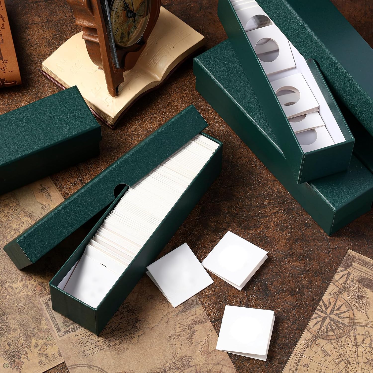 Teling 8 Pcs Coin Storage Box 2x2inch Flip Holders Collectors Coin Supplies Holders for Cents Collection Cardboard (Dark Green)