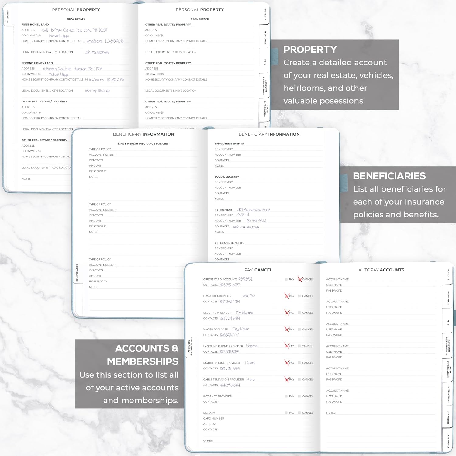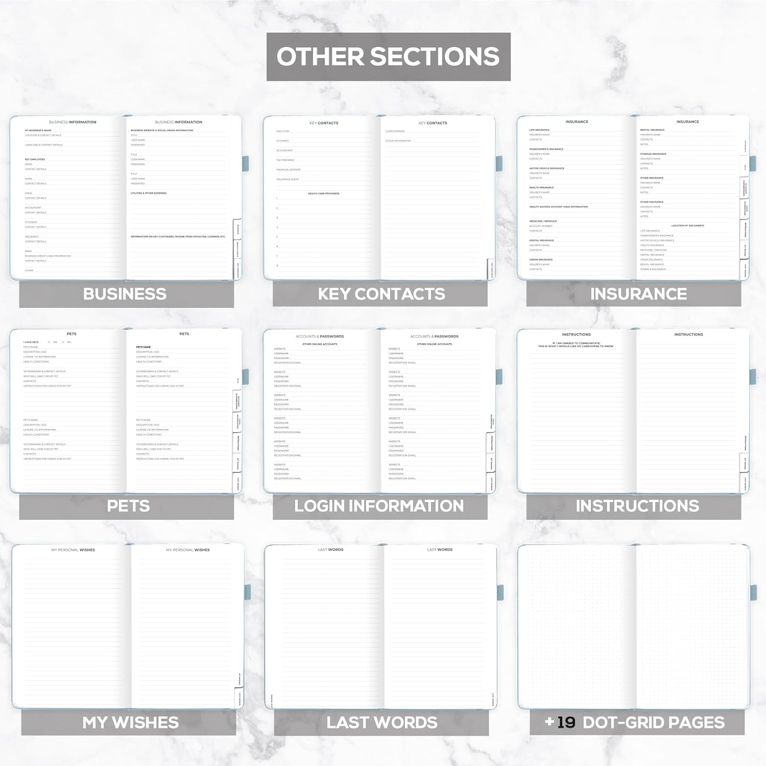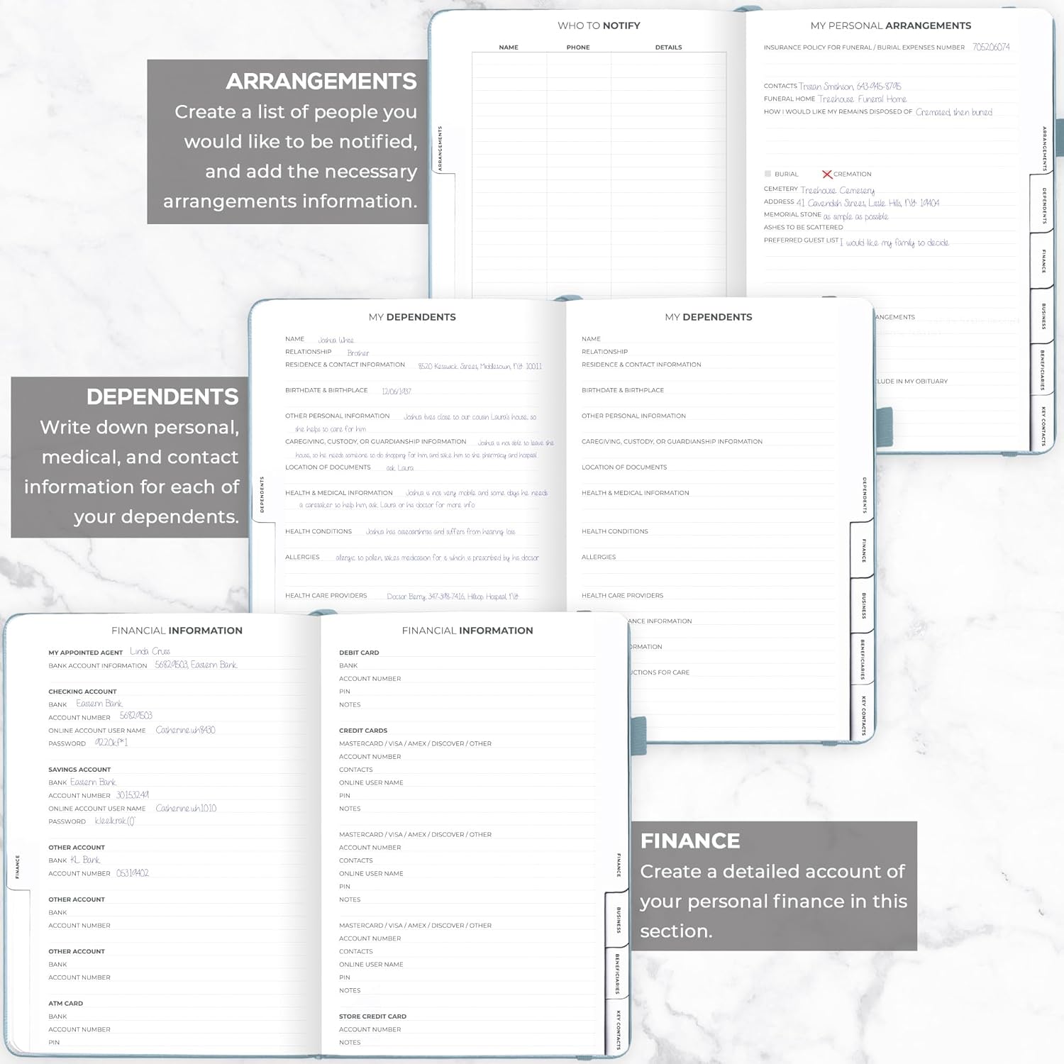 • PREPARE DETAILED INSTRUCTIONS TO GUIDE YOUR LOVED ONES: This guided final arrangements planner is an easy-to-use tool for organizing all essential personal information, from medical data to passwords and financial records.