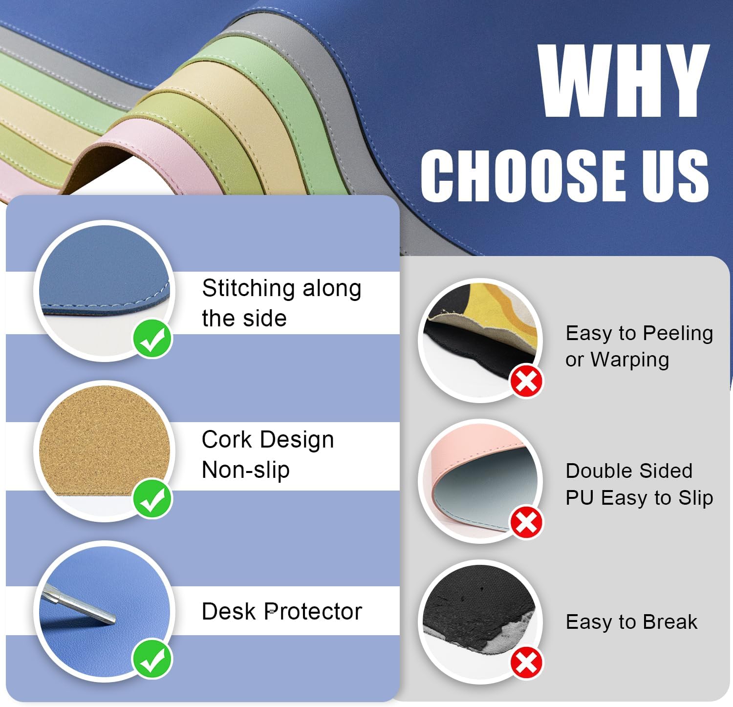 - 🖱️ 🖱️Superior Protection Mat for Desk: Durable PU leather and cork material, provide reliable protection for your desk surface. Safeguard your tabletop from everyday wear and tear with our Dual-Sided Desk Pad. This large mouse pad and desk mat combo is a protective barrier, preventing scratches, scuffs, and spills from damaging your workspace.