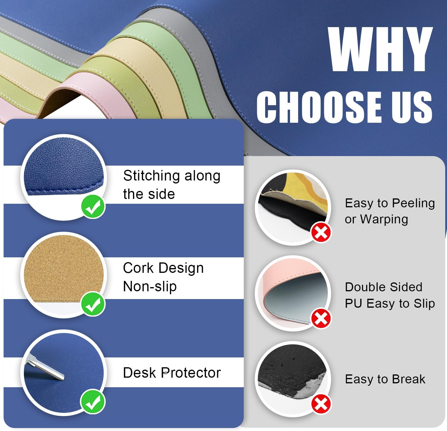 - Superior Protection Mat for Desk: Durable PU leather and cork material, provide reliable protection for your desk surface. Safeguard your tabletop from everyday wear and tear with our Dual-Sided Desk Pad. This large mouse pad and desk mat combo is a protective barrier, preventing scratches, scuffs, and spills from damaging your workspace.