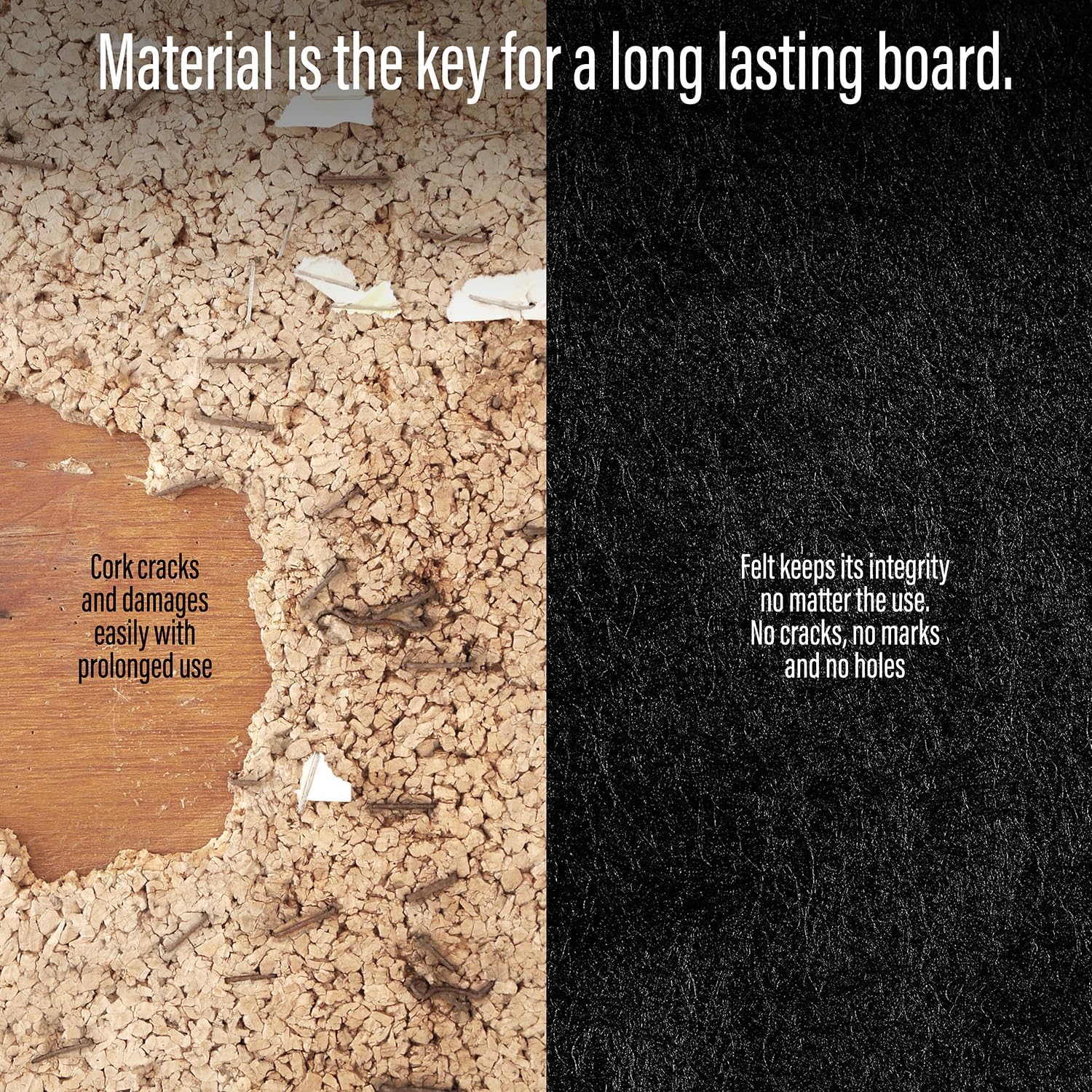 - LIGHTWEIGHT, DURABLE & PIN-FRIENDLY – Crafted from high-quality polyester fiber, our large felt board is lightweight yet sturdy. The 0.35-inch thick surface holds push pins tightly, resists wear, and self-heals over time, making it the ultimate cork board for long-term use.